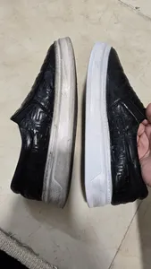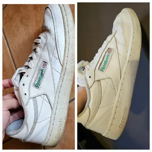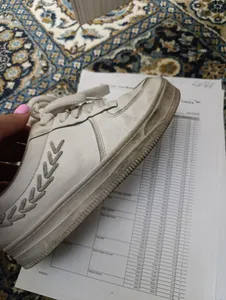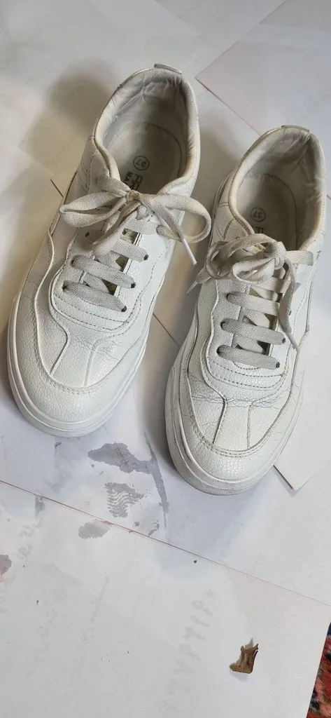 واکس سفید کننده لژ ؛ واکس خیلی خوبیه بنظرم هرکس یدونه باید از اینا تو خونه داشته باشه..کفشای من نو هستن فقط ۲بار پوشیدم لژ کفش خود ب خود زرد شده بود🥲با نوار چسب جاهایی که نباید واکس بخوره با دقت چسب زدم بعد واکس زدم، اول واکس رو روی لژ کشیدم با اسفنج مخصوص خودش که داخلش بود ،گذاشتم خشک شد بعد دوباره واکس زدم این دفعه به صورت ضربه ای واکس رو زدم تا رد اسفنج نمونه ،نتیجه رو تو عکس مشاهده کنید 🙏