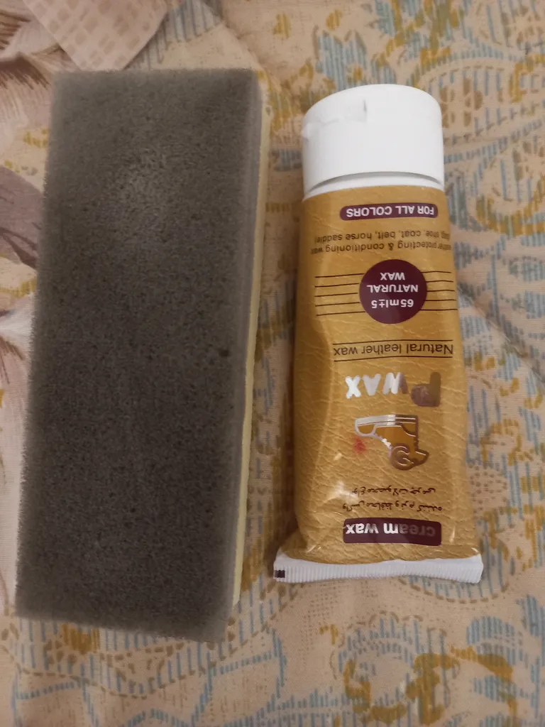 من برای کاپشن چرم گرفتم . رنگ خوبی داره و مثل واکسهای سنتی بوی نفت نمیده ، بویی شبیه صابون معطر داره که برای لباس و کیف خیلی مهمه . به دلیل پایه آب بودن این واکس حتما یک ساعت فرصت دهید تا کامل خشک شود و بعد با برس نرم پرداخت کنید . من بجای استفاده از اسفنج همراه محصول از قلم موی نقاشی و به صورت دورانی استفاده کردم که خیلی نتیجه بهتری داشت . .در مورد اندازه هم عکس گذاشتم که متوجه بشید زیاد بزرگ نیست .