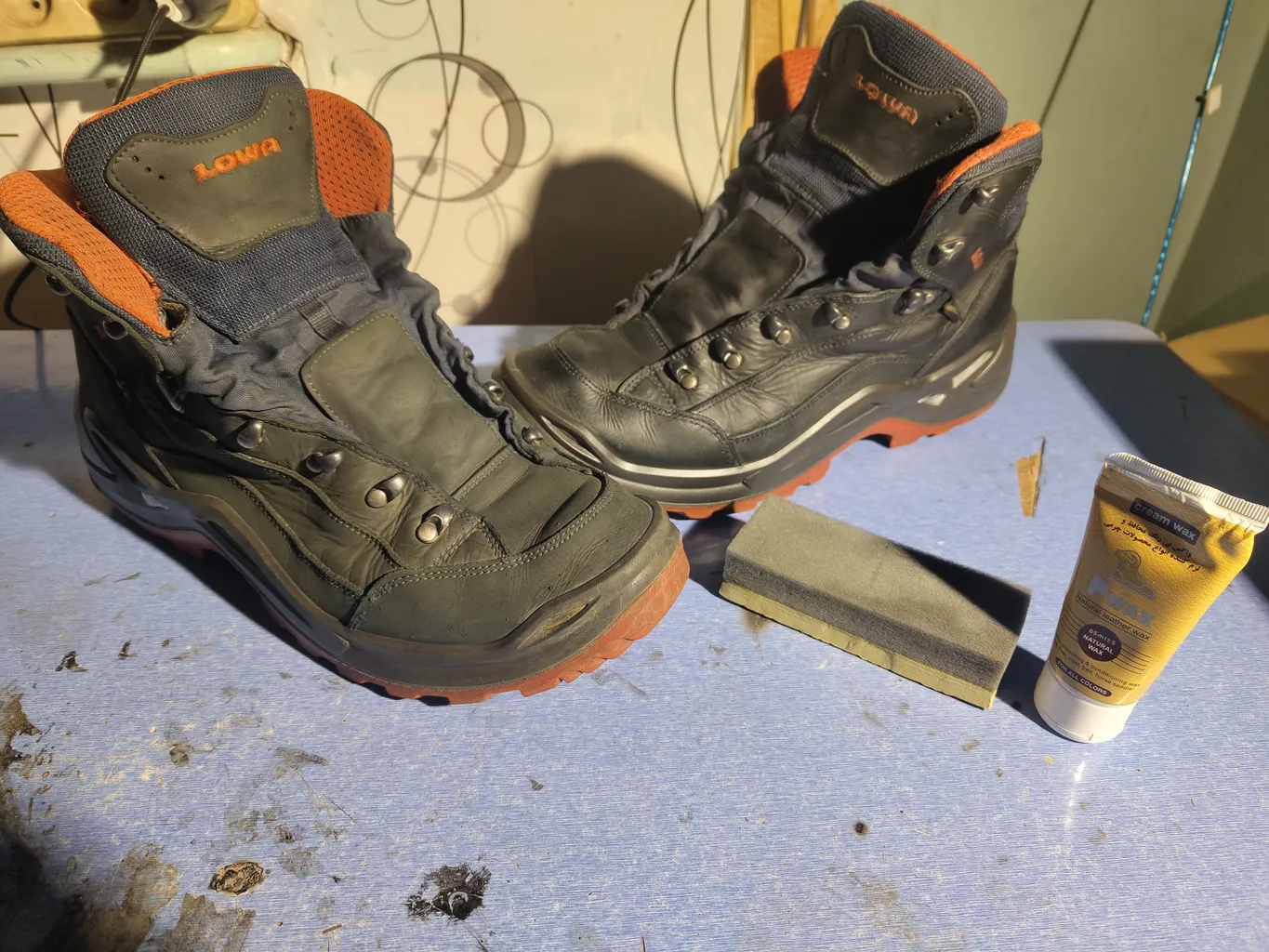 بعد این واکس رو تویه سه لایه بسیار نازک زدم با فاصله برای خشک شدن(تو واکس زیاده روی نکنید) قشنگ جذبش شد و اون رنگ چرم برگشت