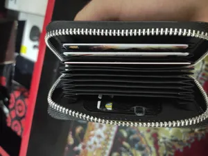 جا کارتی چرم ؛ قبلا از همین جا کارتی گرفته بودم هم جنسش خوب بود ،هم زیپش بهتر بود ،هم داخلش این یه مقدار پایینش کج بود و با اینکه در شگفت انگیز به قیمت ۱۰۹ گرفته بودم اصلا نمیارزید و سوزن سیم کارت و جا کلیدی هم نداشت و۱۲ الی ۱۳ کارت هم توش جا میشه