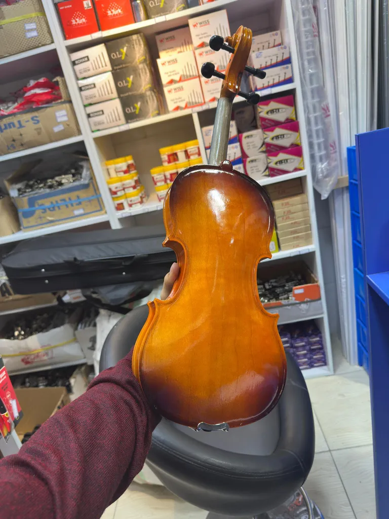 - ⬤ ساخت ایران : ویولنهای ساخت ایران به دلیل استفاده از چوبهای با کیفیت و مهارتهای محلی در ساخت، توانستهاند توجه نوازندگان را جلب کنند. خریداران به این نکته اشاره میکنند که سازهای ایرانی معمولاً از نظر طراحی و کیفیت ساخت قابل قبول هستند و در برخی موارد حتی با نمونههای خارجی رقابت میکنند. این سازها به نوازندگان این امکان را میدهند که از هنر و صنعت داخلی بهرهمند شوند و در عین حال از کیفیت مطلوبی برخوردار باشند.