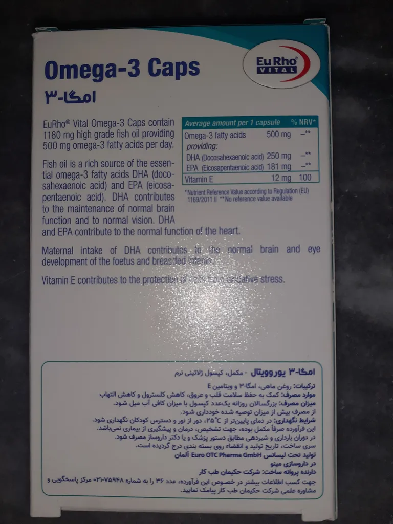 مکمل خوبیه به شرطی که ناشتا نخورید سردرد و درد معده میاره برند یوروویتال عالیه ولی نوسان قیمت و هزینه پست خیلی اذیت کننده هست امگا برا سلامت مغز و قلب مفیده ولی استفاده بی رویه از مکمل ها می تونه مضر باشه بهتره زیر نظر پزشک استفاده بشه و در ضمن من از سامانه ttac وزارت بهداشت استعلام گرفتم دارو اصل بود و مشکلی نداشت