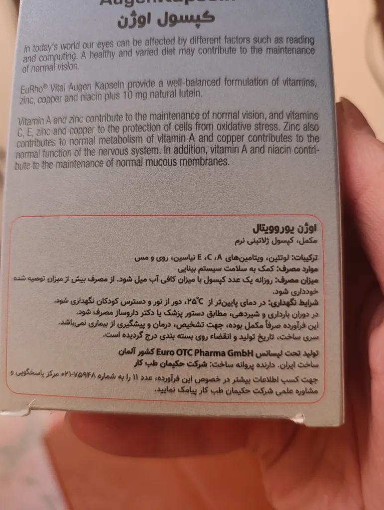 نظر و تجربه خرید کپسول چشم اوژن یوروویتال بسته 60 عددیدر تاریخ ۱۹ شهریور ۱۴۰۴