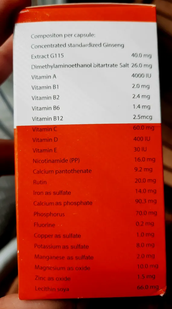 برای کسایی که میخوان بدونن شامل چه ویتامینهاییه عکس میذارم . بعضی دوستان عکس گذاشتن که خود دونه کپسولاش شکسته من یکی از بسته هارو باز کردم سالم بودن ، چند بسته دیگه هم داشتم با نور چراغ موبایل توو اتاق تاریک چک کردم به نظر اونا هم سالم میان