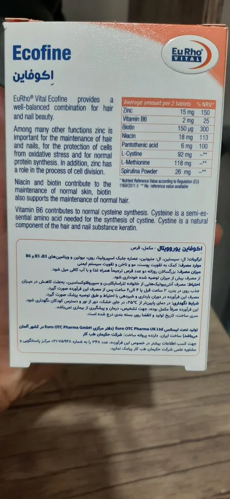 نظر و تجربه خرید قرص اکوفاین یوروویتال بسته 60 عددیدر تاریخ ۰۷ مهر ۱۴۰۴