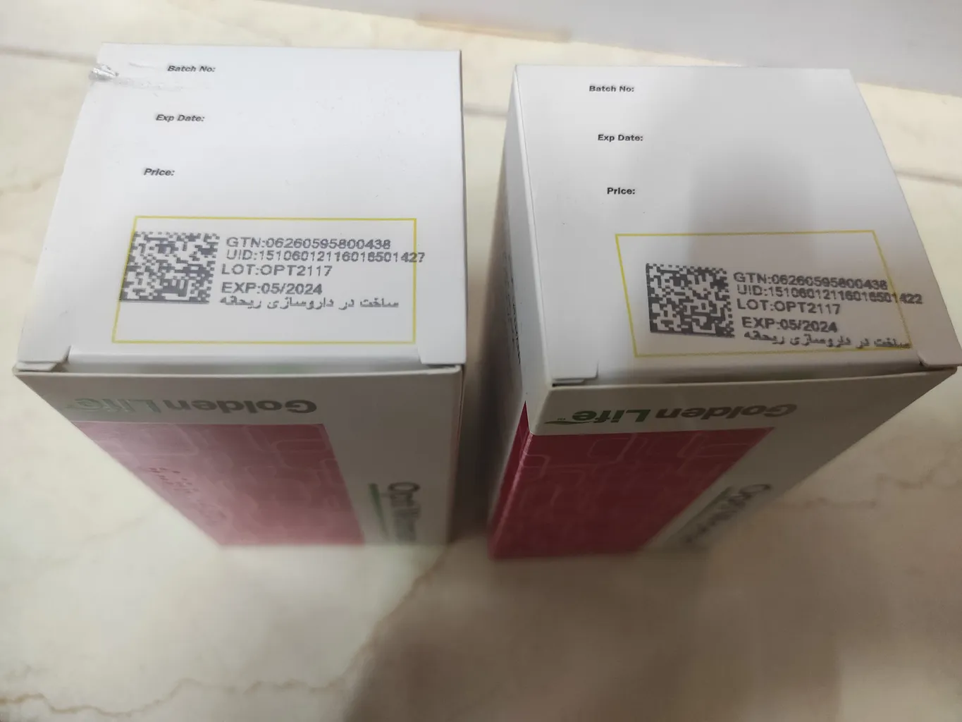 دوستان من بانی دارو خریدم ، اولا که برچسب اصالت کالا نداشت و صرفا یچی مشابهش رو پرینت زدن رو جعبش که اصلا قابل قبول نیست برام ، نکته دوم هم تاریخ تولید و انقضا رو خود جعبه دارو که اونم با جت پرینتر زدن مشخصه راحت پاک میشه ، ملاحضه میکنین من براحتی بخشی از تاریخ رو پاک کردم و نکته سوم هم که تاریخ ارسال بسیار دیرتر از موعد بود و در انتها من یه عکس از یک محصول دیگه گلدن لایف میزارم که ببینید چطور مدل چاپ تاریخ تفاوت دارن ، این محصول روی برچسب چاپ زدن ولی مکمل قبلی که خریدم روی درب کالا تاریخ ثبت شده ، شما از این فروشنده خرید نکنید