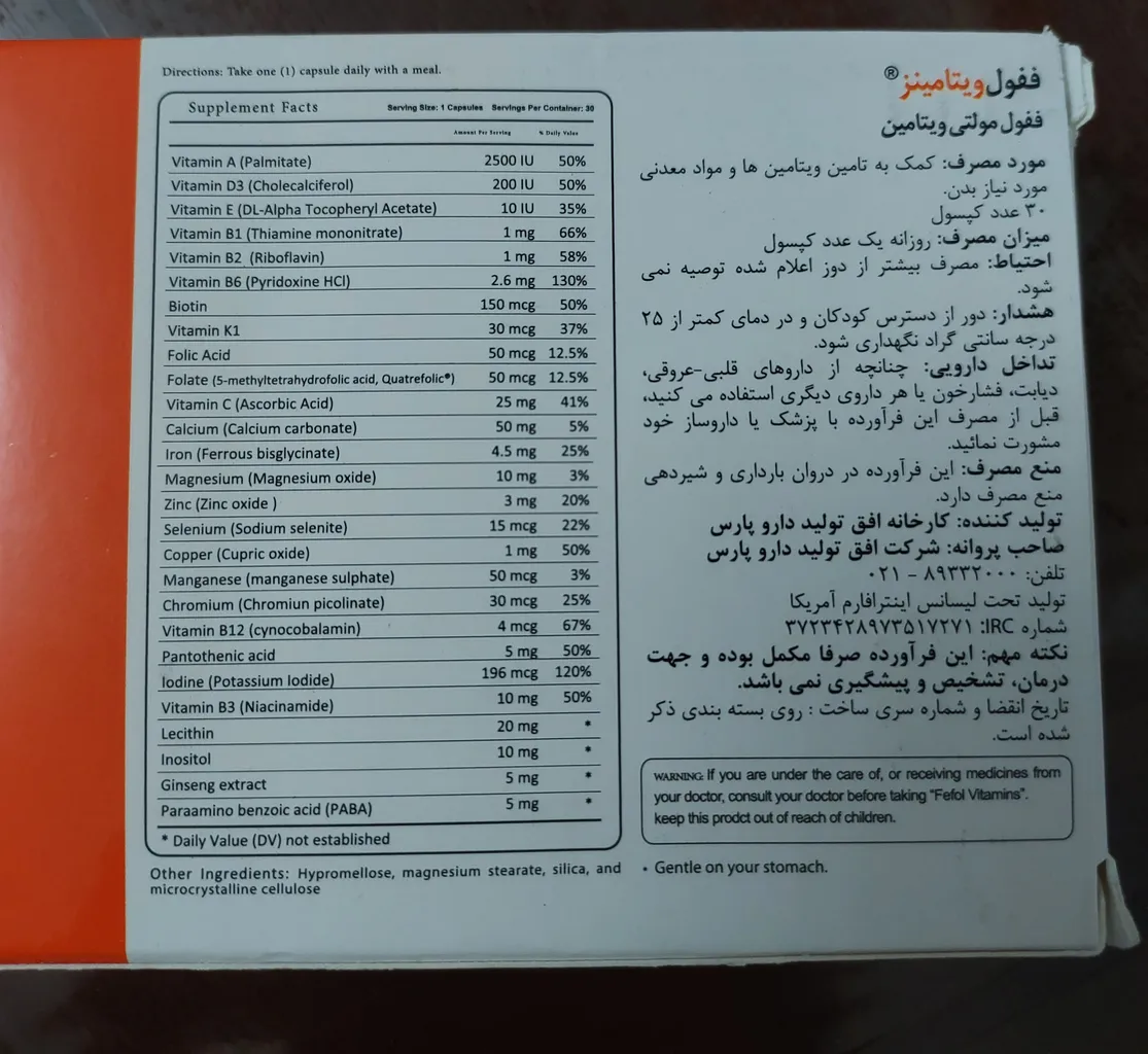 نظر و تجربه خرید کپسول ففول ویتامینز اینترافارم بسته 30 عددیدر تاریخ ۲۸ فروردین ۱۴۰۴