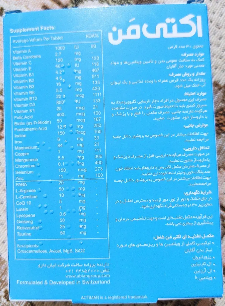 نظر و تجربه خرید قرص اکتی من بسته 30 عددیدر تاریخ ۰۵ دی ۱۴۰۰