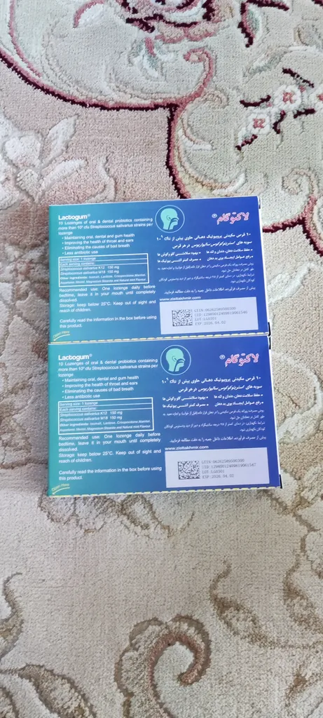قرص مکیدنی لاکتوگام ؛ تو تخفیف قیمتش مناسبه یه شب در میان بعد مسواک زدن میزارم تو دهان حس خوبی میده برای سلامت لثه ودندان برای هضم غذا ومعده هم خوبه ،تاریخ انقضاش هم برای برج۴/۲۰۲۶هستش