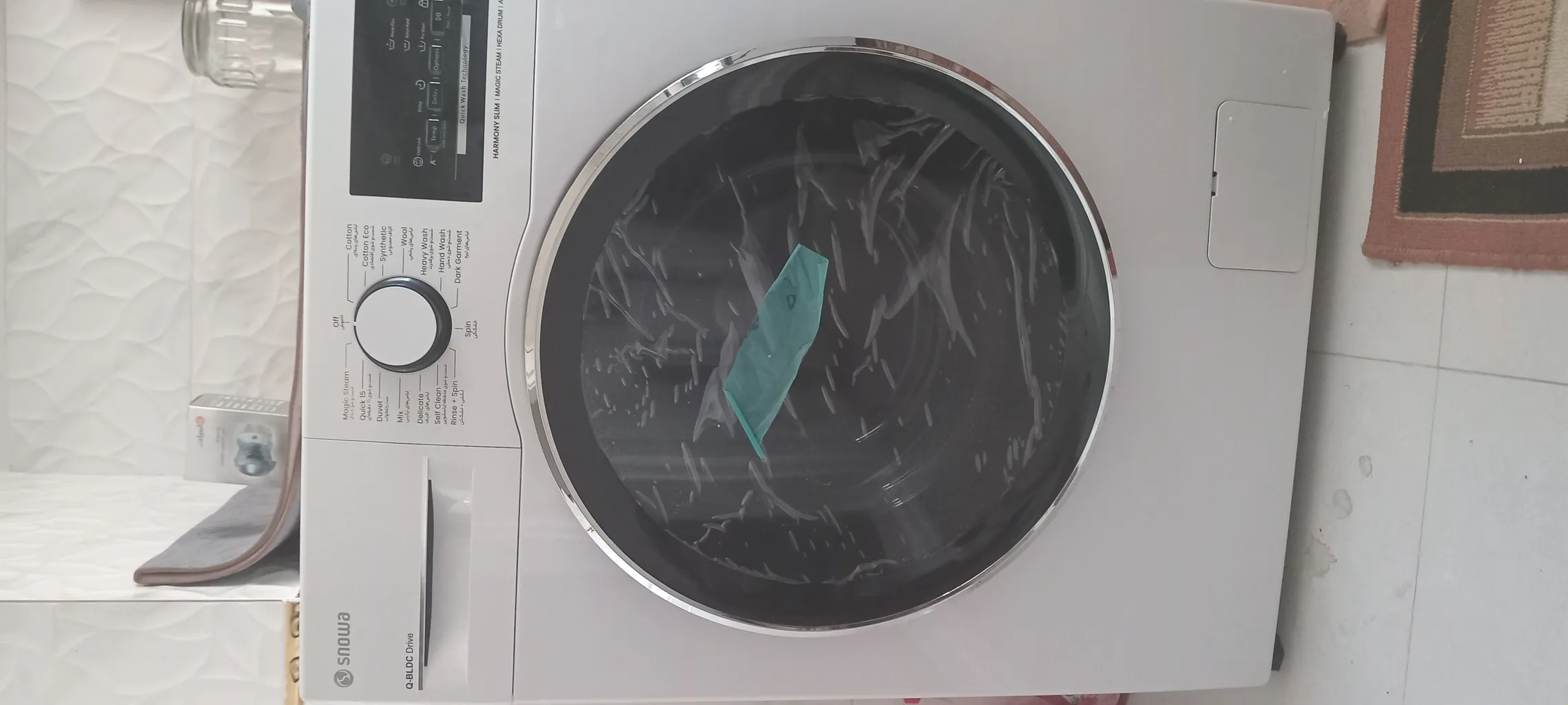 - ⬤ قابلیت اضافه کردن لباس : امکان اضافه کردن لباس در حین شستشو یکی از ویژگیهای مثبت است که خریداران به آن اشاره کردهاند و آن را بسیار کاربردی میدانند. این ویژگی به ویژه در مواقعی که فراموش کردهاید لباسی را اضافه کنید، بسیار مفید است.
