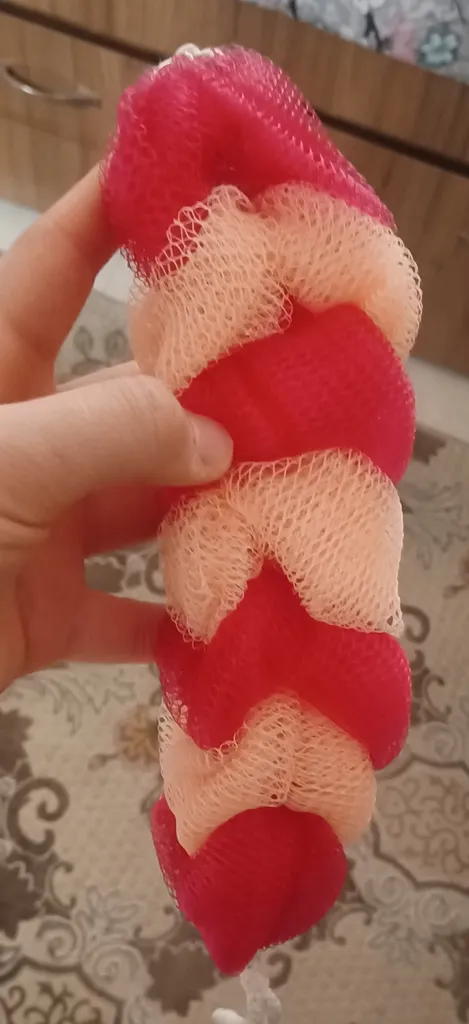 محصول کاربردی و باکیفیتی هست و علاوه بر این مزایا، قیمت بسیار مناسبی هم داره. رنگش گل بهی نبود و هلویی هست. فکر می کردم به خاطر اینکه توری هست ضخیم باشه و پوست رو آزار بده ولی اینطور نبود. وقتی شاپو بدن رو بهش می زنم خیلی کف می کنه. لیف دومی هم کوچیک به نظر میاد ولی کش میاد. حواستون باشه بعد از استفاده تکون بدید تا ازش آب چکه نکنه بعد بذارید خشک بشه چون ممکنه اگه داخل محیط حموم خیس بمونه سیاه بشه. در کل ازش خیلی راضی هستم
