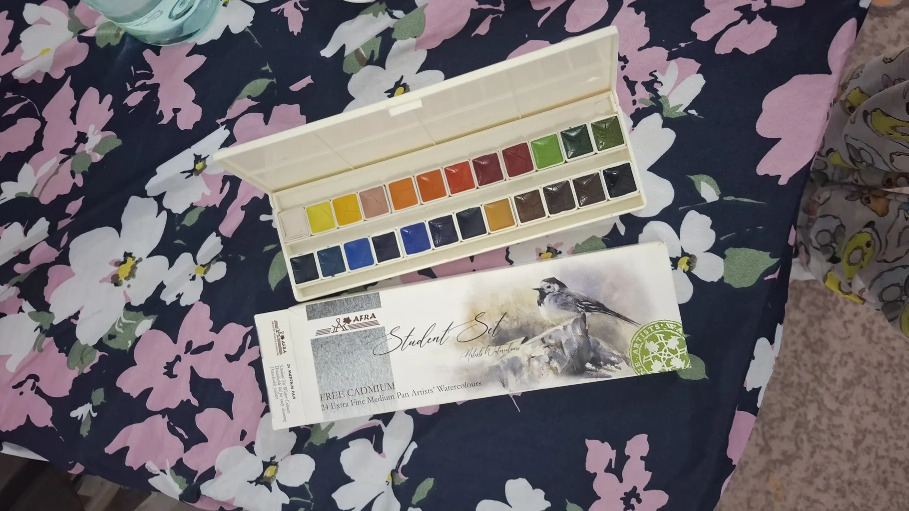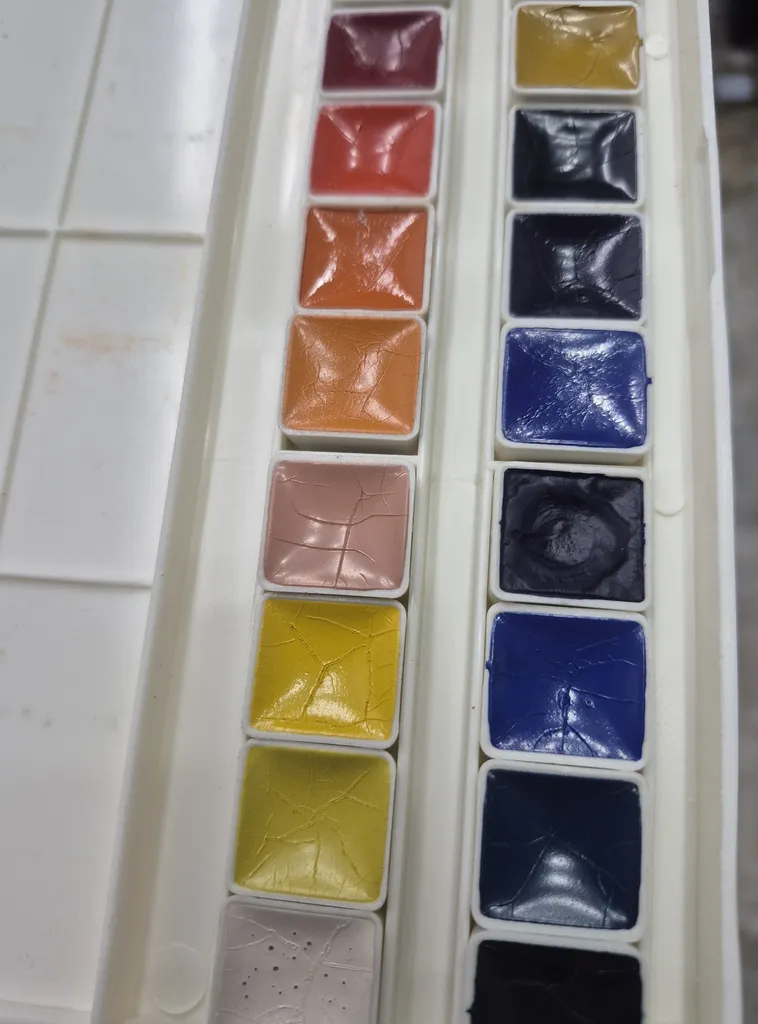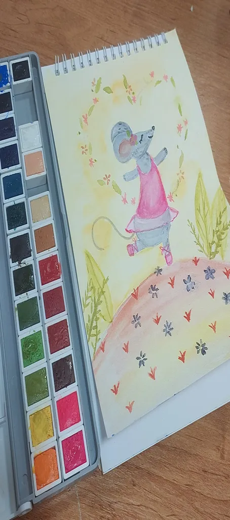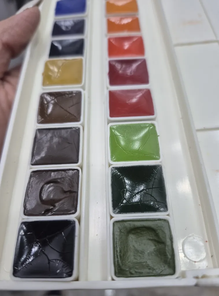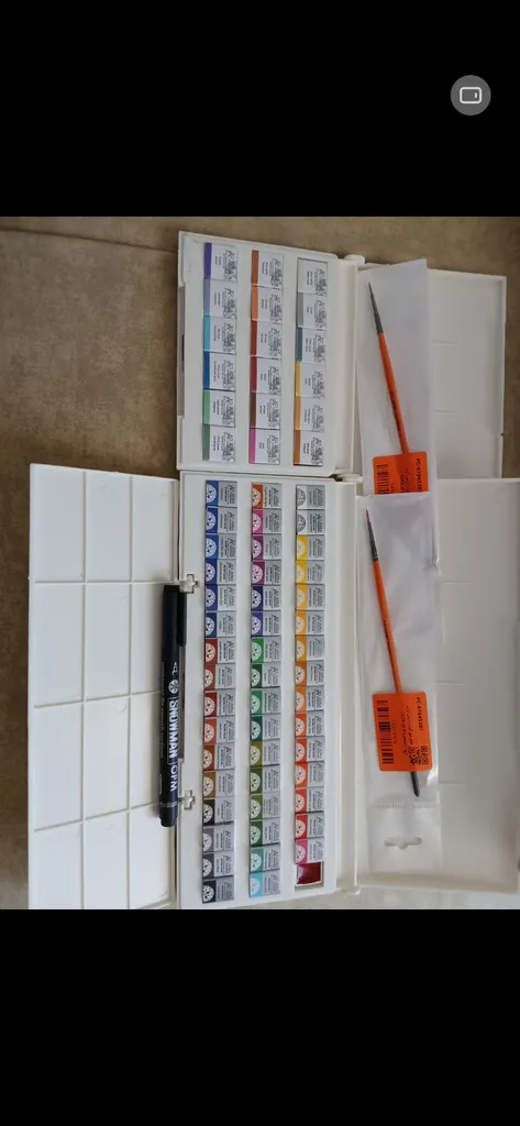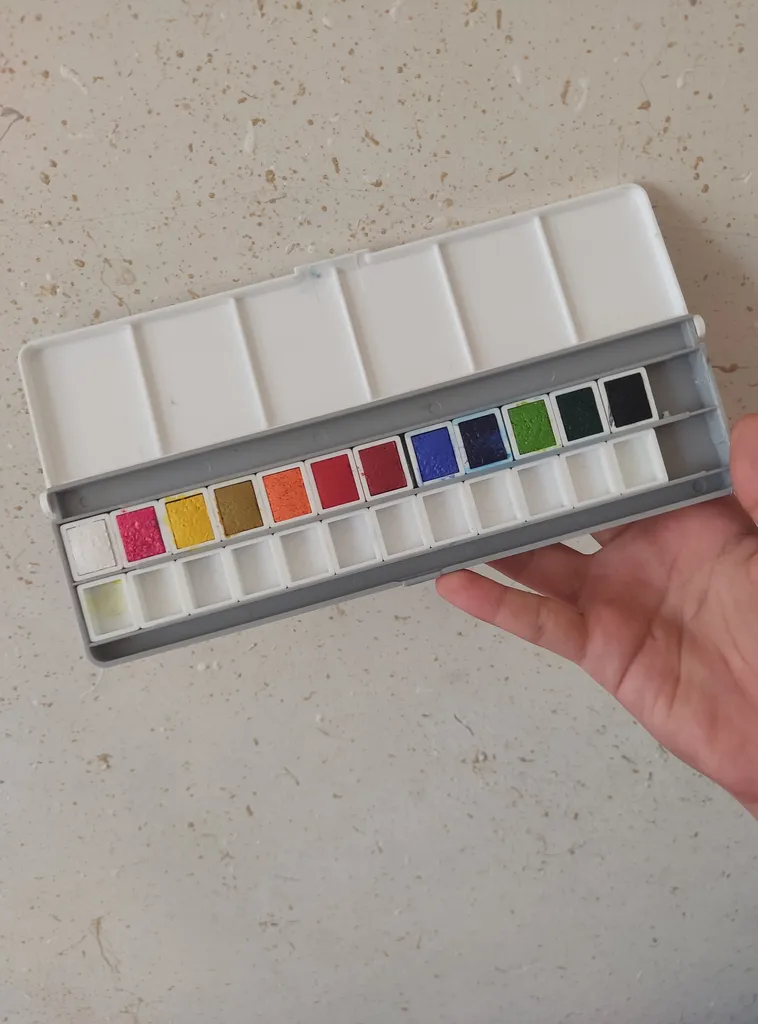 خیلی کیوت جمع جور و راحت هست،میگن آبرنگ افرا بهتره بعد از این اونم گرفتم ولی به نظرم این یکی هم رنگ های خوبی دارد و از اون مهمتر جعبه به راحتی باز و بسته میشه و رنگ ها در جاشون جابجا نمیشن ولی آبرنگ افرا جعبه به اذیت باز میشه و رنگ ها در جاشون لق هستند و هی درمیان. این آبرنگ آقا میری را به افرا ترجیح می دهم. یک نقاشی هم باهش کشیدم تا ببینید