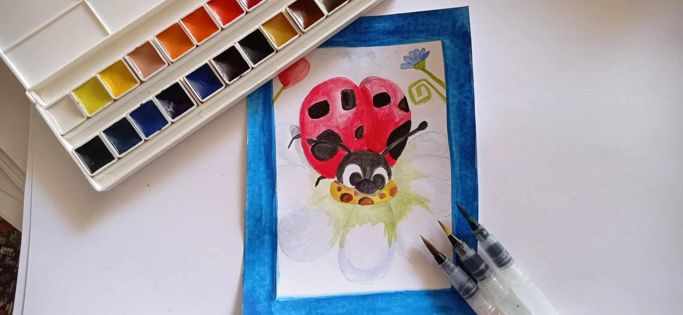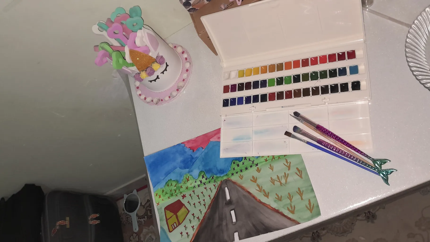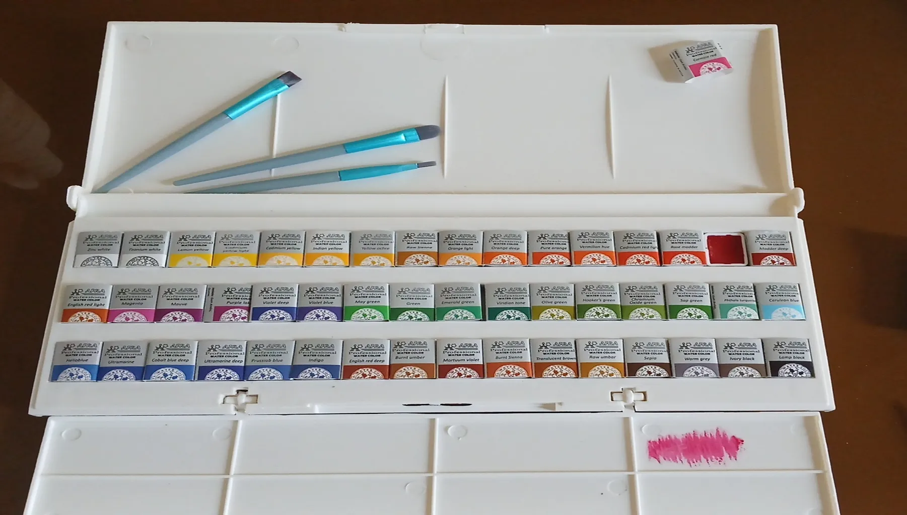 خیلی کیوت جمع جور و راحت هست،میگن آبرنگ افرا بهتره بعد از این اونم گرفتم ولی به نظرم این یکی هم رنگ های خوبی دارد و از اون مهمتر جعبه به راحتی باز و بسته میشه و رنگ ها در جاشون جابجا نمیشن ولی آبرنگ افرا جعبه به اذیت باز میشه و رنگ ها در جاشون لق هستند و هی درمیان. این آبرنگ آقا میری را به افرا ترجیح می دهم. یک نقاشی هم باهش کشیدم تا ببینید
