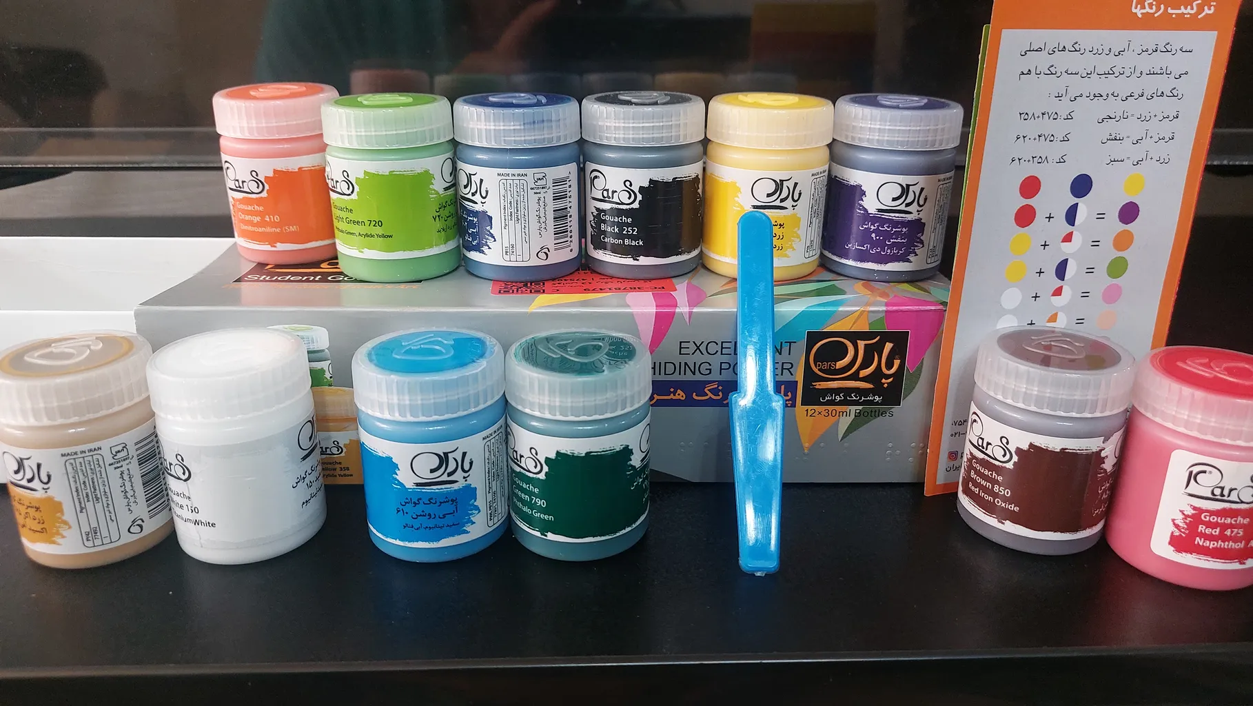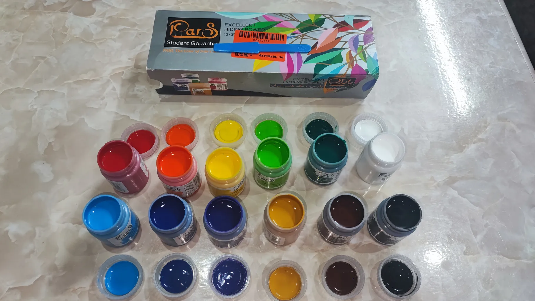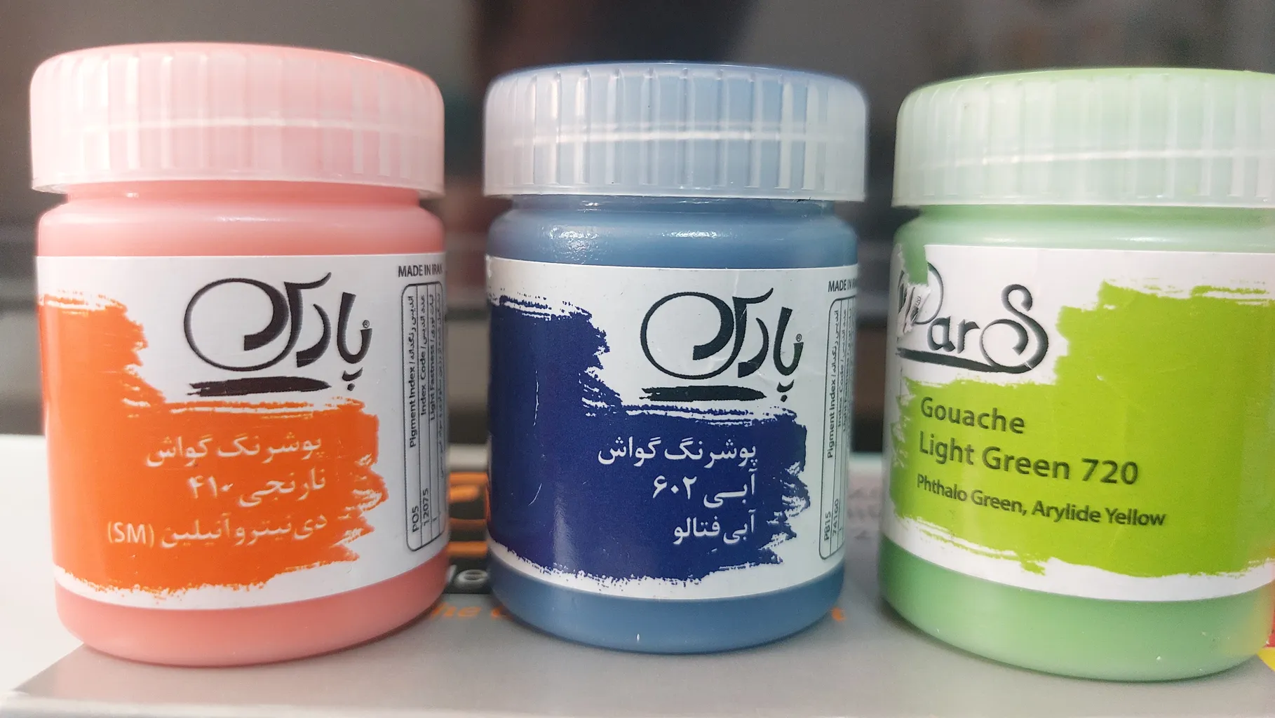 بسیار غلیظ و پر بودن تاریخ تولیدش هم بروز بود سالم بدستم رسید حتی یه قطره هم نریخته بود واقعا نسبت به بقیه گواش های ایرانی پارس بهترینه من اینارو باهاش کشیدم عکس گذاشتم که خودتون رنگ های خوشگلشو ببینید