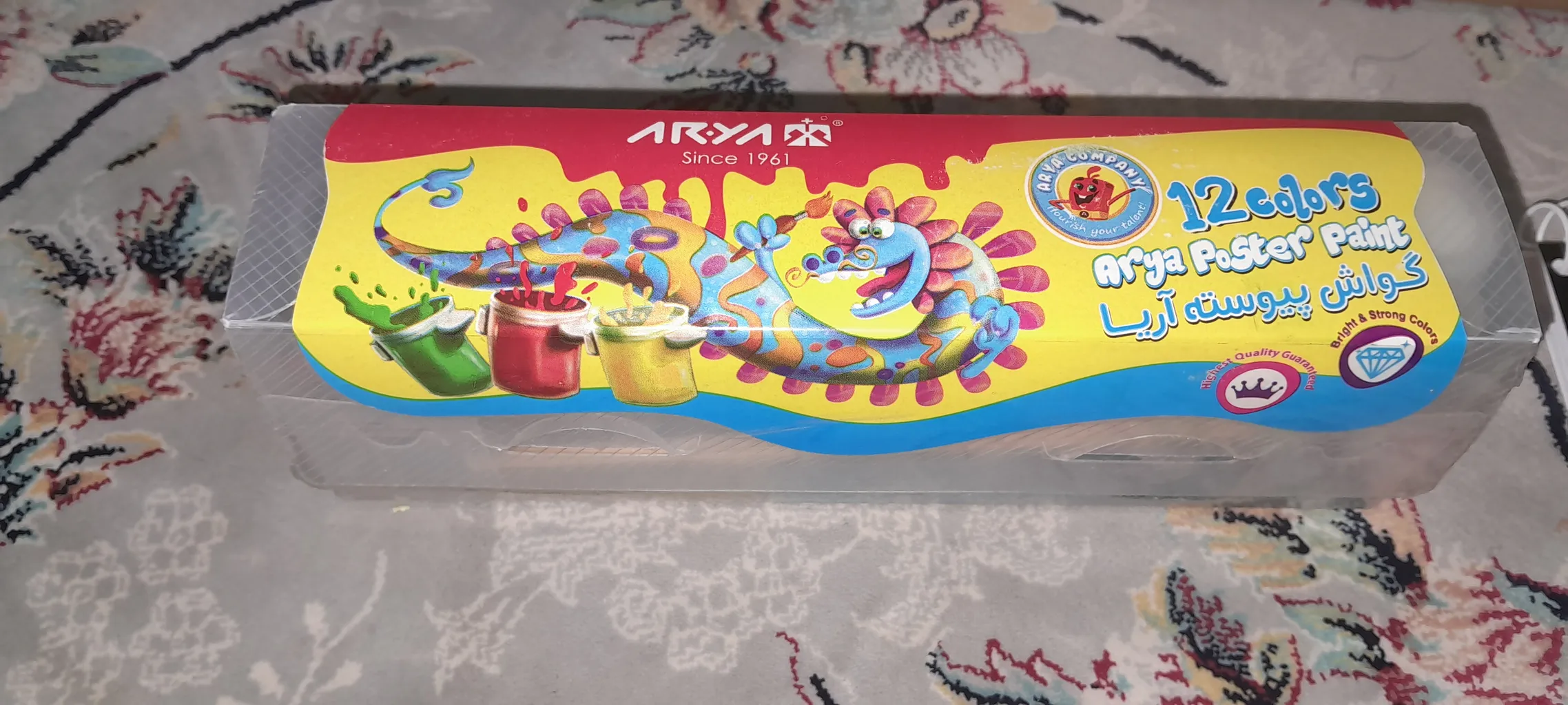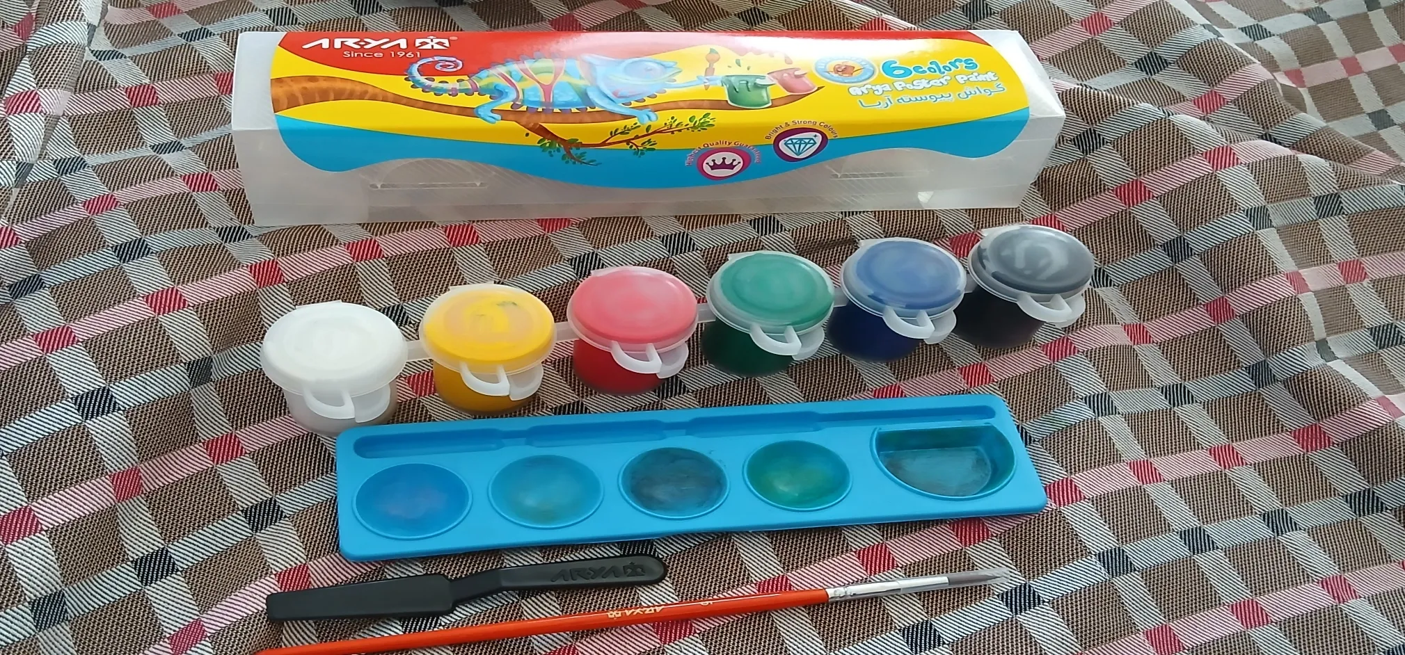 خریدار بدون نام : گواش آریا ؛ همه رنگ ها گواش سالم بودن و داخل جعبه یک قلمو و کاردک کوچک هم وجود داشت که کار رو برای برداشتن رنگ خیلی راحت تر میکنه ، من که خیلی راضی بودم و به عنوان یه فرد مبتدی کارم رو راه انداخت