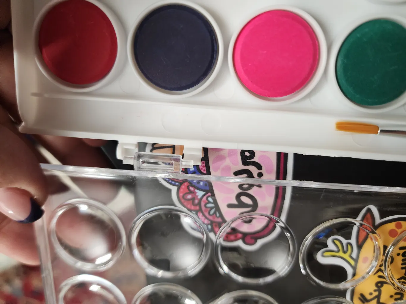 چند تا از رنگ ها شکسته بودن و بعضی هاشون کاملا مشخصه که ازشون استفاده شده و حجمش کمتره