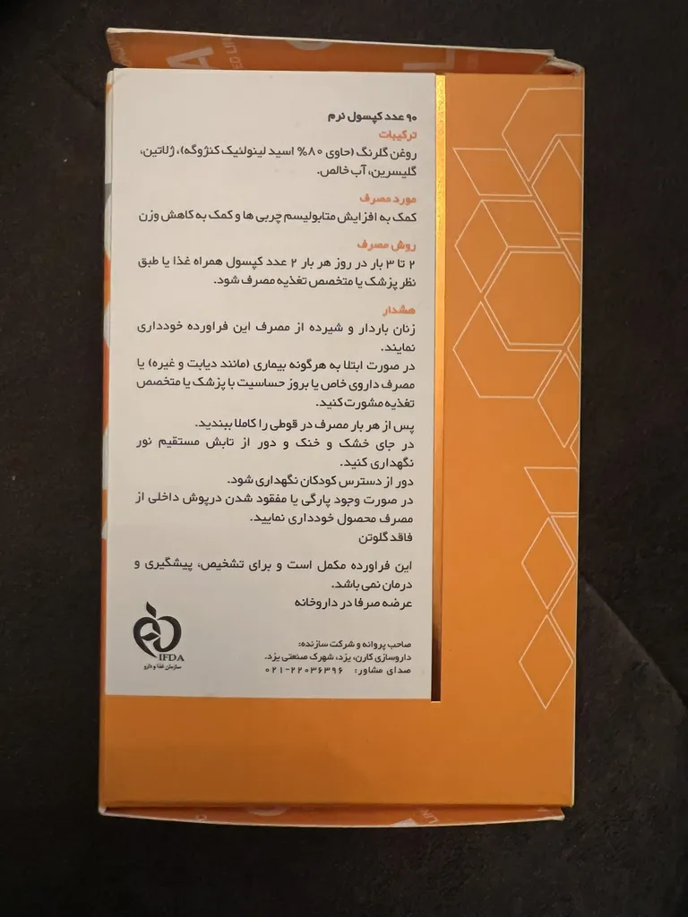نظر و تجربه خرید کپسول سی ال ای 1600 میلی گرم کارن بسته 90 عددیدر تاریخ ۱۸ شهریور ۱۴۰۴