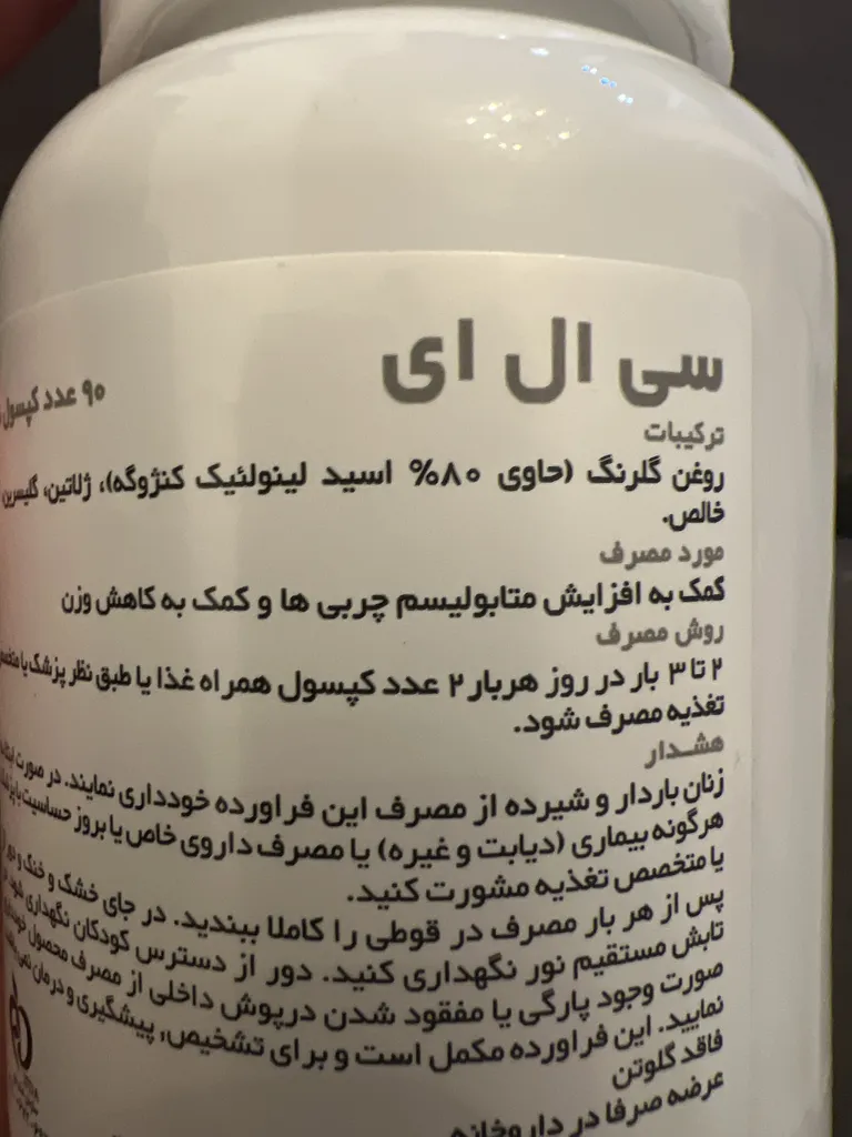 نظر و تجربه خرید کپسول سی ال ای 1600 میلی گرم کارن بسته 90 عددیدر تاریخ ۱۳ شهریور ۱۴۰۴