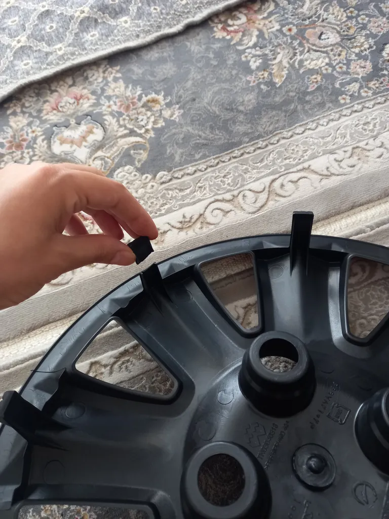 فقط بنا به تجربه ای که نسبت به قالپاق های قبلی داشتم، از ترس اینکه اون مهره های نمادین (که توسط خار متصل شدن) یه موقع به مرور زمان کنده نشن قبل از نصب اومدم تمام اونها رو با چسب مایع چسبوندمشون که خیالم از کنده شدنشون راحت باشه