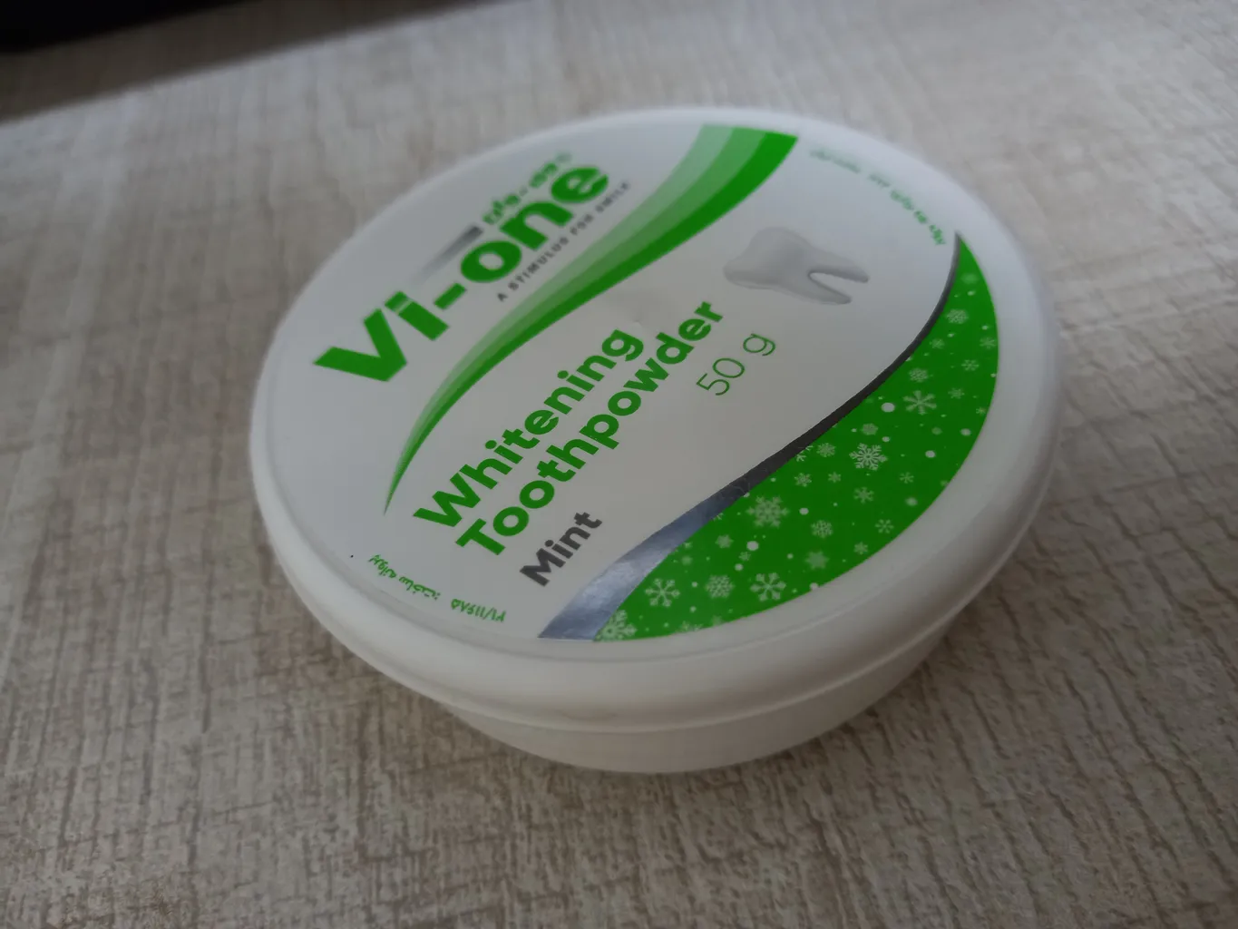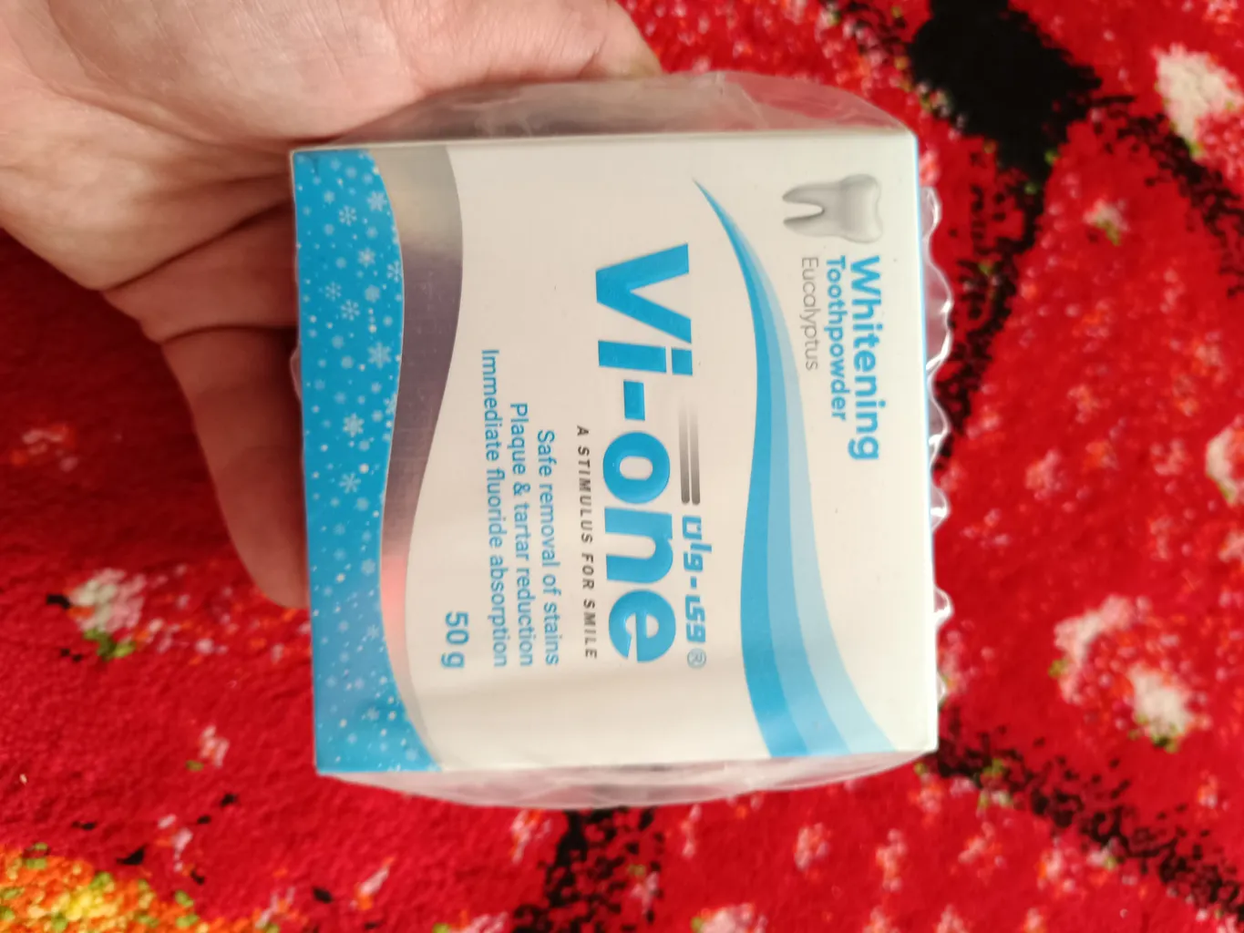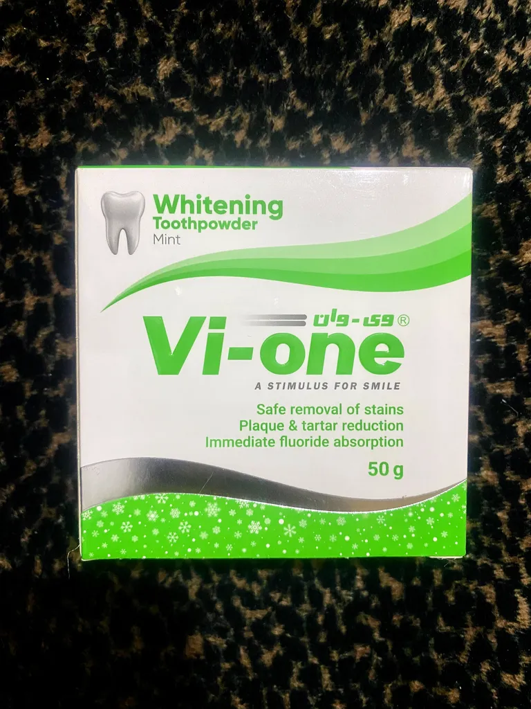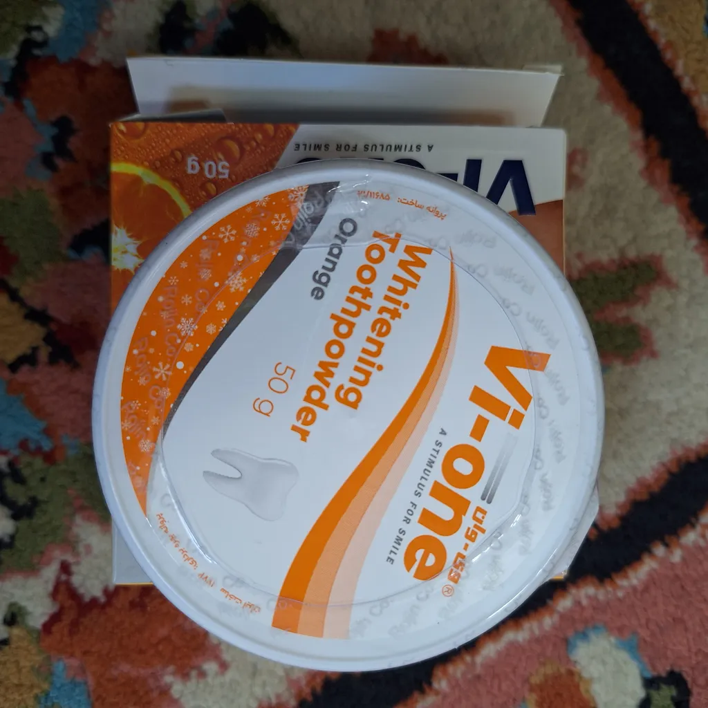 ریحانه رحمانی : پودر سفید کننده دندان وی-وان ؛ خیلی خوبه ... حتما استفاده کنید ..... تو بروشور زده بود که در هفته ۳ بار استفاده بشه ... ولی در کل هفته ای یک بار کافیه که استفاده بشه ... ۵۰ گرمه و اینکه تا سال ۱۴۰۵ تاریخ انقضا داره ... و اینکه من با قیمت ۲۱ هزار تومن تهیه کردم از دیجی کالا ... روی جعبه اش زده که قیمت اصلی رو ۲۶ هزار تومن