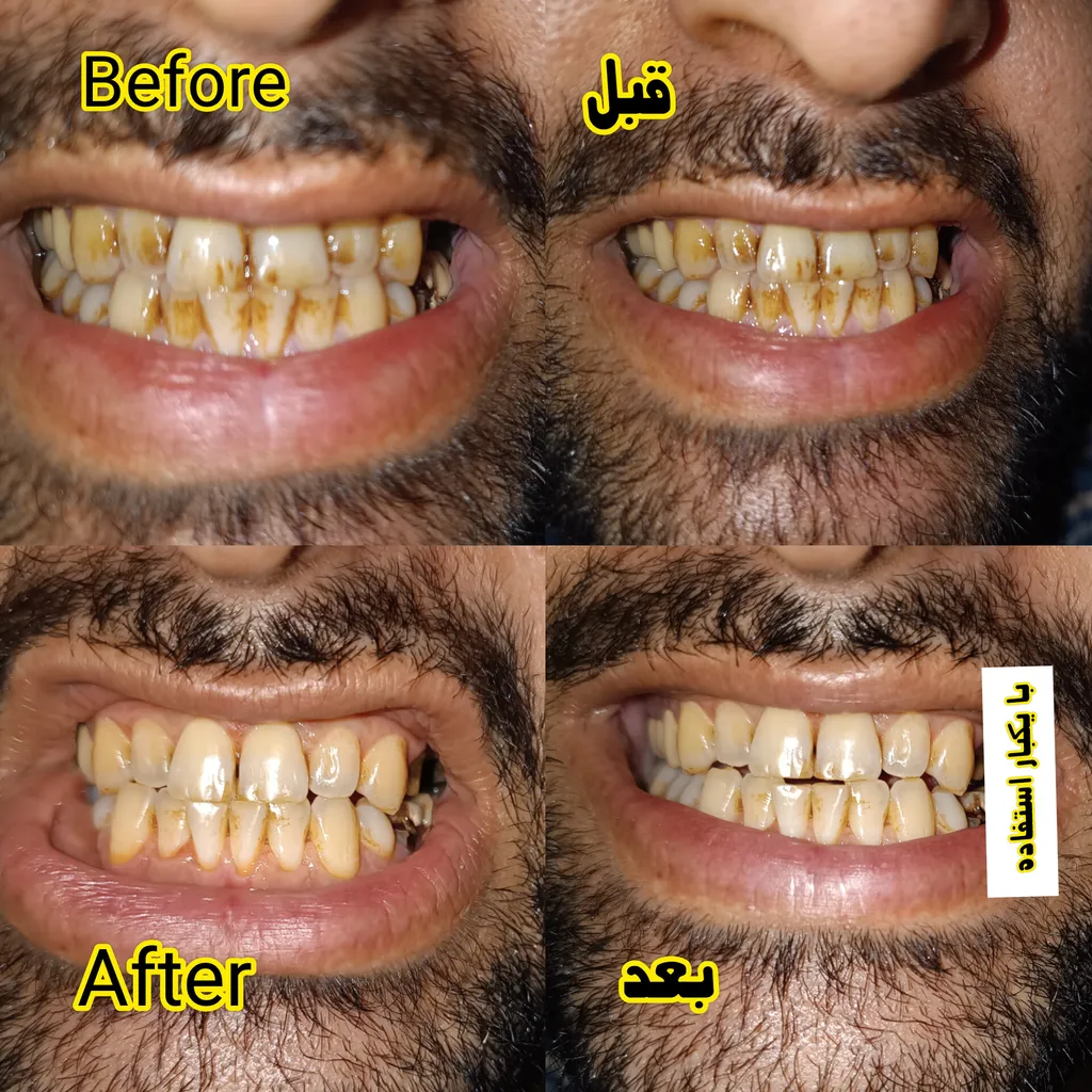خریدار بدون نام : جرمارو واقعا تمیز میکنه حتی با یکبار استفاده و زردی های ناشی از جرم و نوشیدنی و از بین میبره من دندون پر کرده زیاد دارم و بخاطر دیدگاها فک میکردم آسیب بزنه و حساس بشن بخاطر همین دیرتر سفارش دادم تا بیشتر تحقیق کنم ولی اونقد قوی نیس که آسیب بزنه فقط تمیز میکنه و حس سبکی میده حتما امتحان کنید