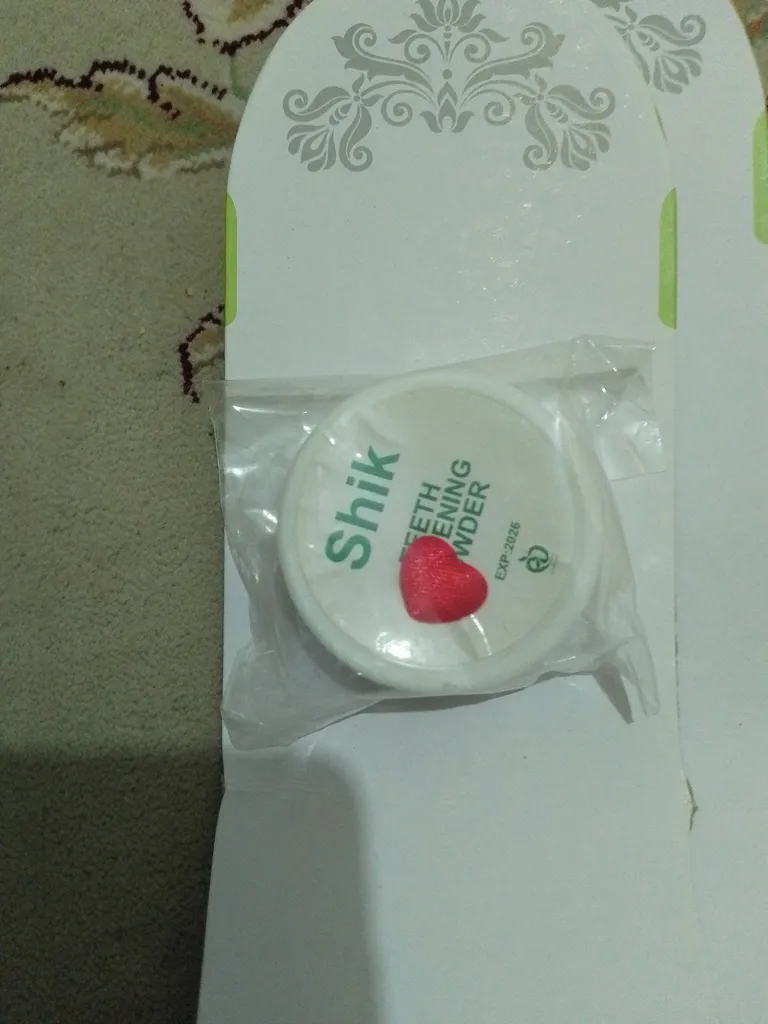 سفید کننده دندان ؛ من قبلاً از این سفید کننده های پودری استفاده کردم خیلی خوب بوده و ضمناً بو خوبی داره و یه قلب کوچیک هم توش بود جالب بود اما فقط اندازه اش کوچیکتر از قبلی بود که خریدم از داروخانه