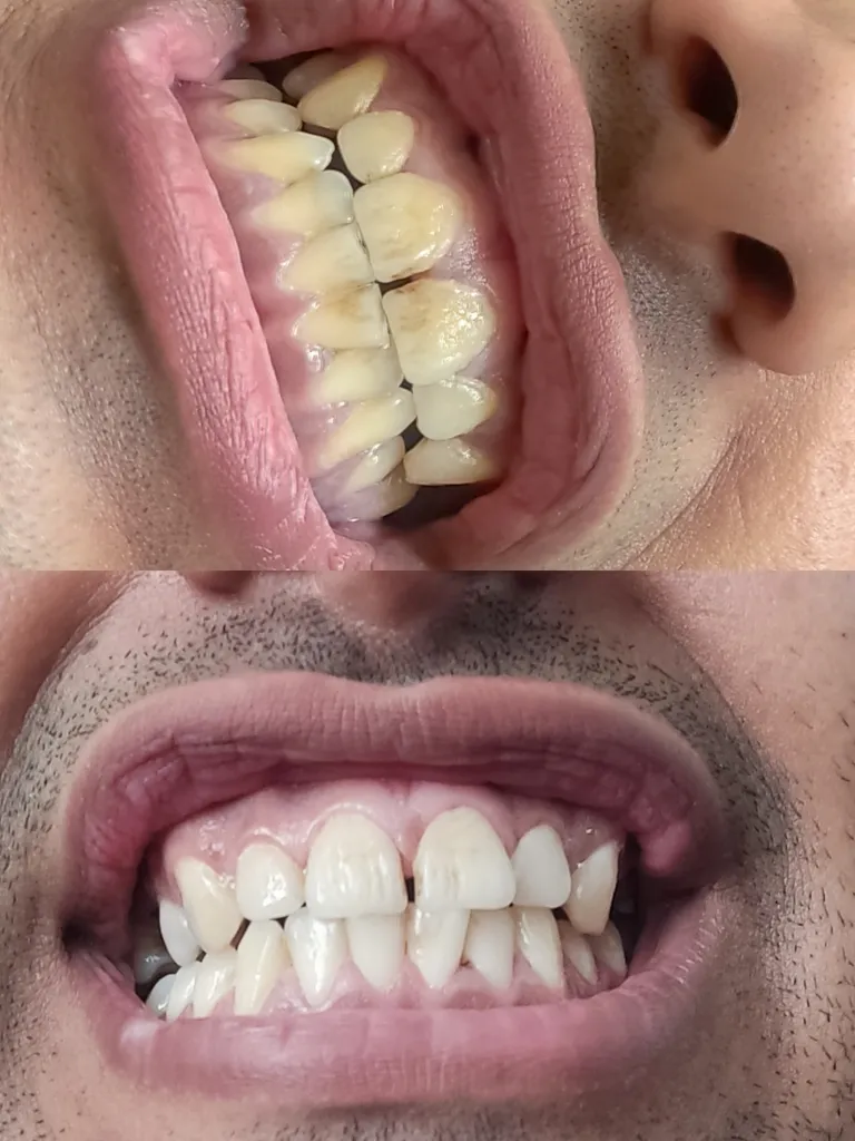 رضا سیم جو : برای من نتیجه باور نکردنی داشت فقط بعد از یکبار استفاده نوبت جرم گیری دندونپزشکی گرفته بودم واسه هفته بعد اینو همینطوری دیجی سفارش دادم امیدی نداشتم ولی بعد از یکبار استفاده شگفت زده شدم عجیب غریب ، من متاسفانه روزی یک بسته سیگار میکشیدم مصرف قهوه و کاکایو دارک هم بالاست ، اعتماد به نفسم رفته بود ، تا حالا سه بار زدم حساسیت نداشتم ، یک روز در میون استفاده میکنم،
