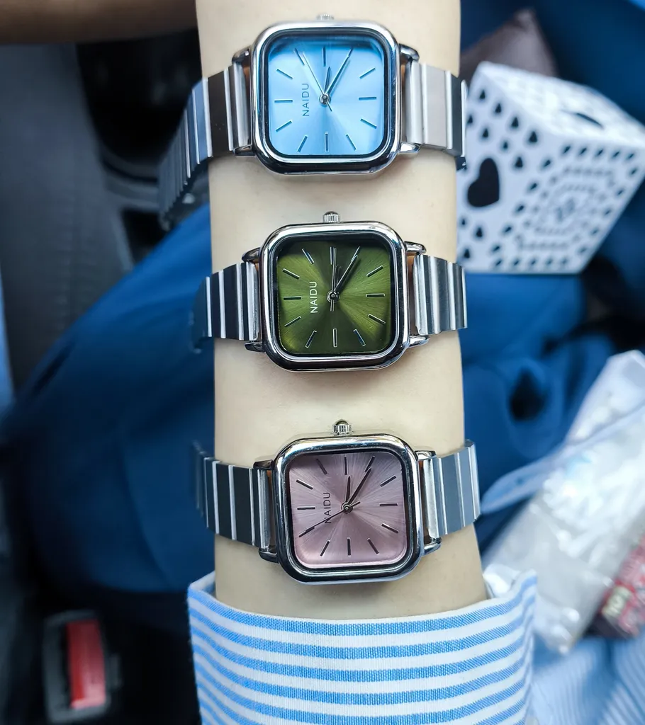 - ⬤ ساعت مچی عقربهای با بند فلزی زنانه : این ساعتها به دلیل بندهای فلزی خود، ظاهری مدرن و شیک دارند. خریداران از دوام و کیفیت ساخت این ساعتها ابراز رضایت کردهاند و آنها را برای استفاده روزمره و رسمی مناسب میدانند. با این حال، برخی خریداران به وزن سنگین این ساعتها اشاره کردهاند و معتقدند که ممکن است برای استفاده طولانیمدت ناراحتکننده باشد.