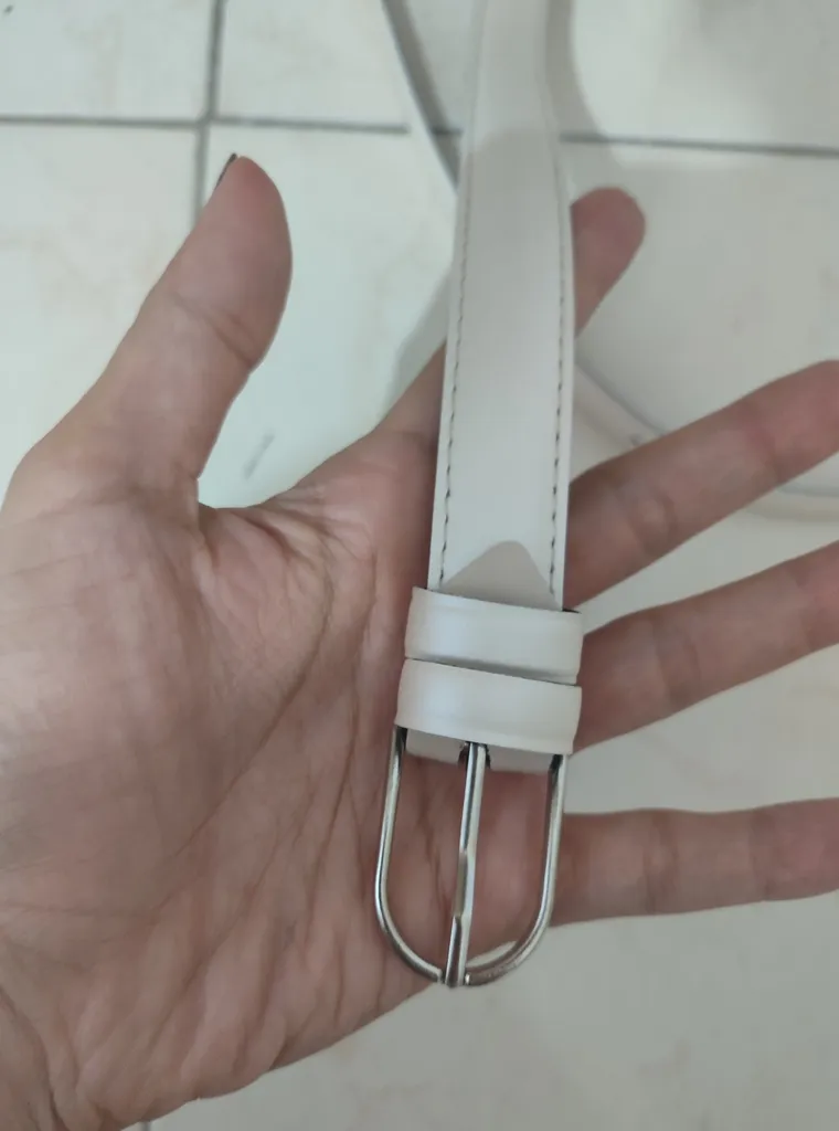 افسانه کریمی کلکانی : کمربند سفید ؛ رنگ خودش کاملا سفیده و سگکش طلایی براق هست سالمه خداروشکر.