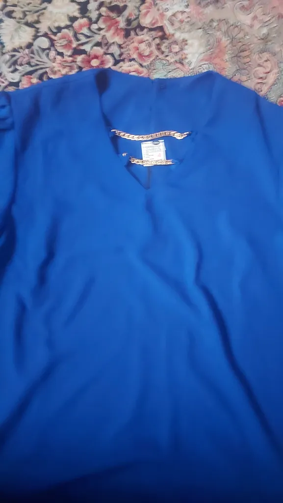 شومیز کرواتی ؛ رنگ شومیز آبی کاربنی هست و خیلیییی قشنگه مدلش کرواتیه و حلقشم روش بود و توی یه کاور ارسال شد