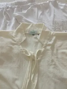 در عکس و مشخصات کالا سفیده اما شیری یا بهتر بگم کرم لیمویی بود که با دامن سفیدم کاملا تفاوت رنگ داشت. بر خلاف یقه ظریف در عکس، یه یقه آهاری با بندهای ضخیم داشت که تنخور راحت نداشت و زیبا نبود. امیدوارم تولید کننده محترم ایراد زمختی یقه و بندها و مغایرت با رنگ سفید رو برطرف کنن تا خریدار از کالا رضایت داشته باشه. جنسش خوب بود اما با این مبلغ میشه شومیز با دوخت ظریفتر خرید