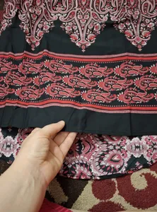 دوختش تمیزه مدلش قشنگه مخصوصا استین هاش جنسش قشنگه یکم مثل ساتن میمونه کمی براقه و لیزی کمی داره جنسش حریر نیست کرپ حریره که ضخیمه و بدن نما نیست و ایستایی داره تو بدن رنگش دقیقا زرشکیه و خوش رنگه (البته این مورد سلیقه ایه) سایزشم دقیقا سایز خودتون سفارش بدین من به خاطر یه سری دیدگاه ها که گفتن بزرگتر بگیرین یه سایز بزرگ گرفتم که برای یکمی گشاده باید سایز خودم میگرفتم قد پیراهن خوبه من قدم ۱۷۰ هست و کاملا تا پایین شکمم اومد و کوتاه یا خیلی بلند نبود نشبت به قیمتش ارزش خرید داره و برای مهمونی دوستانه و دورهمی ها یا یکم مجلسی تر هم میشه استفاده کرد