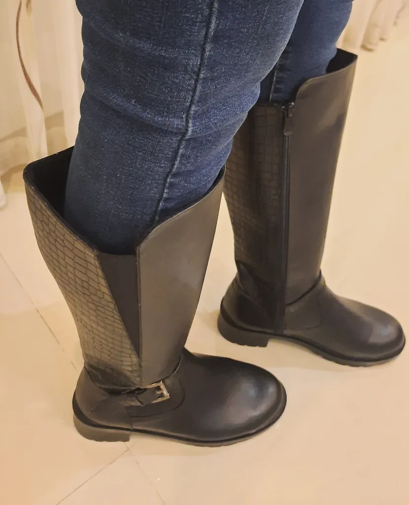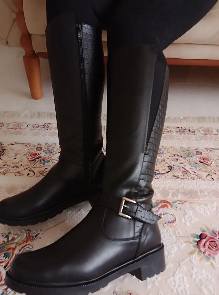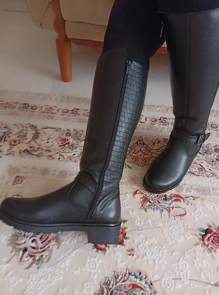 - ⬤ بوتهای بلند : این نوع بوتها معمولاً تا بالای زانو یا حتی بالاتر میروند و به عنوان یک انتخاب شیک و گرم در فصلهای سرد شناخته میشوند. خریداران از زیبایی و استایل این بوتها ابراز رضایت کردهاند و آنها را مناسب برای استفاده در مهمانیها و موقعیتهای رسمی میدانند. با این حال، برخی از خریداران به تنگی ساق و عدم راحتی در استفاده طولانیمدت اشاره کردهاند.