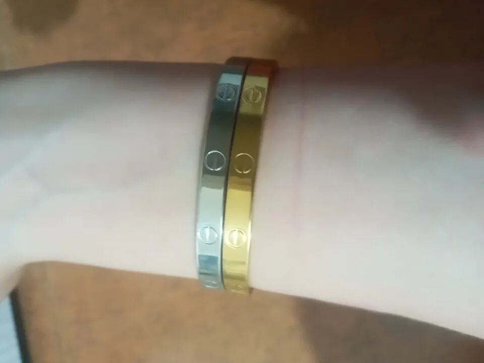 مهناز جلالی کلده : من این دستبند رو تقریبا یکسال پیش خریدم و همیشه دستم بوده، واقعا راضی هستم و فقط کمی رنگش کدر شده، برای هدیه بار دوم هم خریدمش، عکس هردورو باهم میذارم قضاوت باخودتون، سری اول ۱۴۵ت و این سری ۱۳۳ خریدمش،یکم سفت باز و بسته میشه که بنظرم حسن هست تا زود باز نشه، برای سایز النگو ۲تا۳ اوکی هست و دست های بزرگ تر قطعا براشون تنگ می شه، بنظرم واقعا ارزش خرید داره، زیباست و خوش دوام