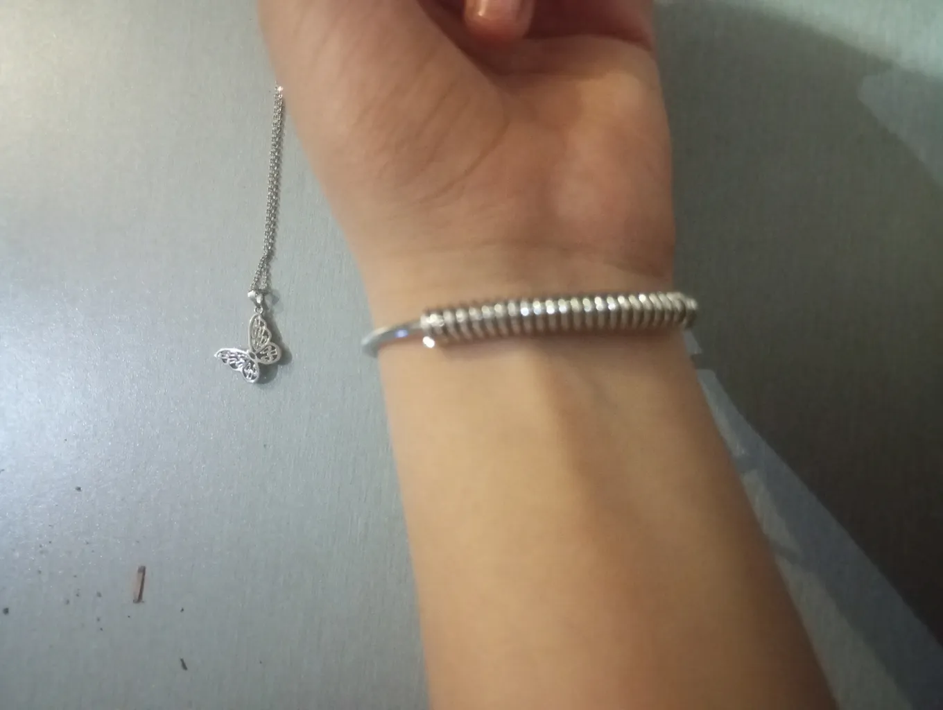 یاسمن دائی : دستبند ماری ؛ خوشگل و ظریف مشابه طلا من خیلی دوسش داشتم عکسشم میزارم کنارش یه دستنبد خاویار هم گرفتم که خیلی قشنگ شد در مورد ثبات رنگش الان نمیتونم نظر بدم بعد از یه مدت استفاده حتما میام نظرمو ویرایش میکنم عکسشم میزارم کسایی که قصد خرید دارند راحت تر تصمیم بگیرن