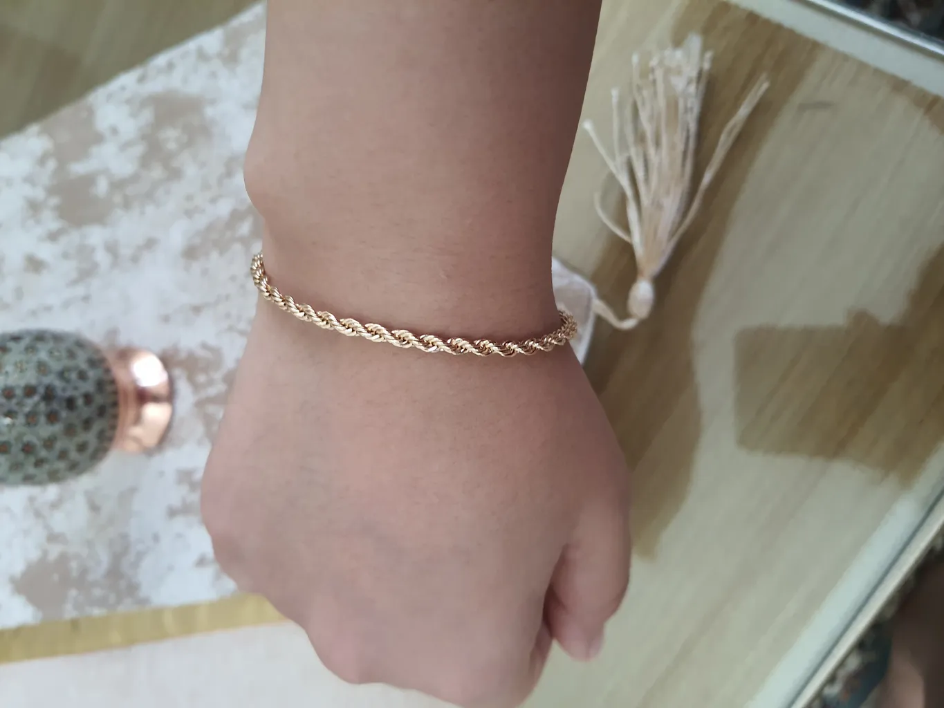 نگین جهان بین : دستبند زنانه مدل ماری طلایی ؛ دو هفته بیشتر هست که این دستبند رو خریدم و از لحظه ای که به دستم رسید انداختمش دستم خیلی دوسش دارم و زیباست و اصلا رنگش تغییر نکرده و مثل روز اول زیباست