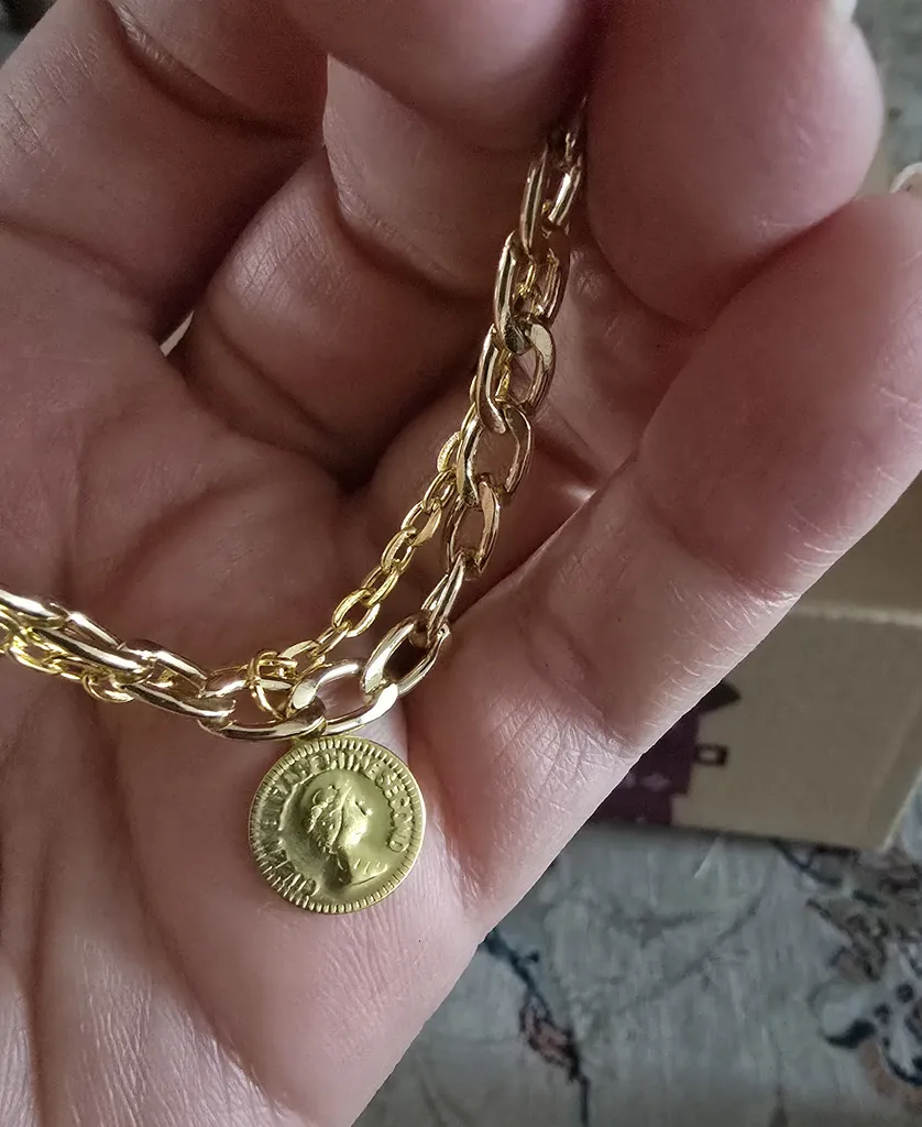 ولی در نگاه اول تفاوت رنگهای دو زنجیر کاملا مشهوده، طرحش خیلی بد و زشته. من فکر میکردم چون خودم خانومم و کمالگرا اینقدر سریع متوجه عیبهاش شدم، همسرم تا گرفت دستش، به سکه اشاره کرد، گفت این چرا اینقدر دماغش گنده س و زد زیر خنده😂