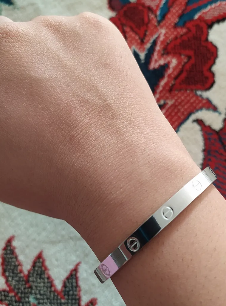 مریم غروی اصفهانی : دستبند فنری ؛ خیلی ظریفو قشنگه من که دوسش دارم، پوست من خیلی حساسه به همه چی حساسیت دارم اما اصلا به این دستبند حساسیت نداشتم. دوستانی که گفتن قیمتش بالاست اتفاقا برای دستبند رنگ ثابتی که ضد حساسیته خیلی هم قیمت خوبیه