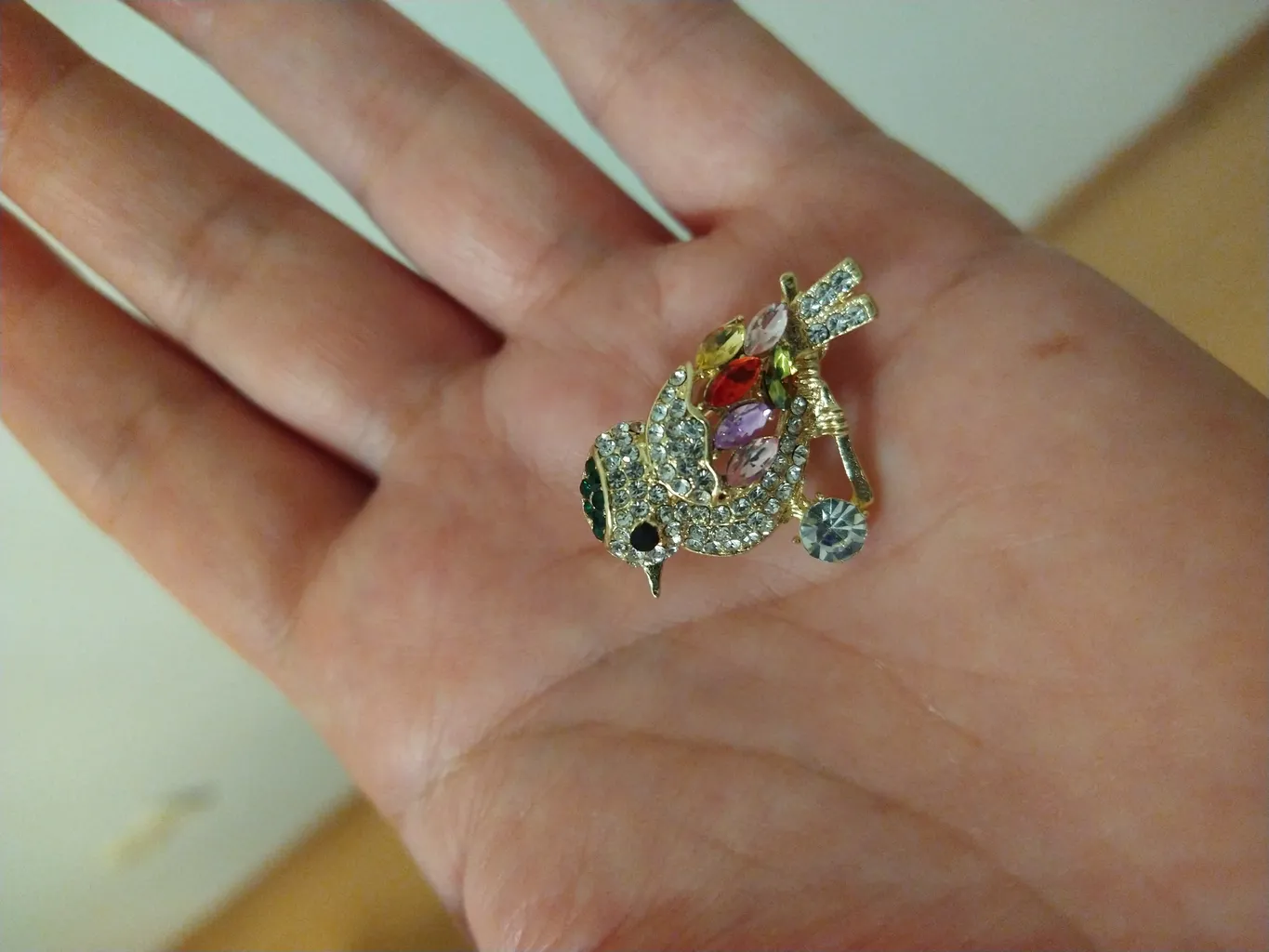 قشنگ بود. ولی به نظرم این قیمت ۱۶۷ تومنی که من دادم اصلا نمی ارزه در حد ۵۰ تومن می ارزه چون اون ظریف کاری که تو سنجاق سینه های خودم داشتم (عکس یکیش رو گذاشتم) این نداشت. با این حال قشنگ بود و کسی که بهش هدیه دادم دوست داشت و لی همون اول تا بازش کرد، یکی از نگین هاش افتاد