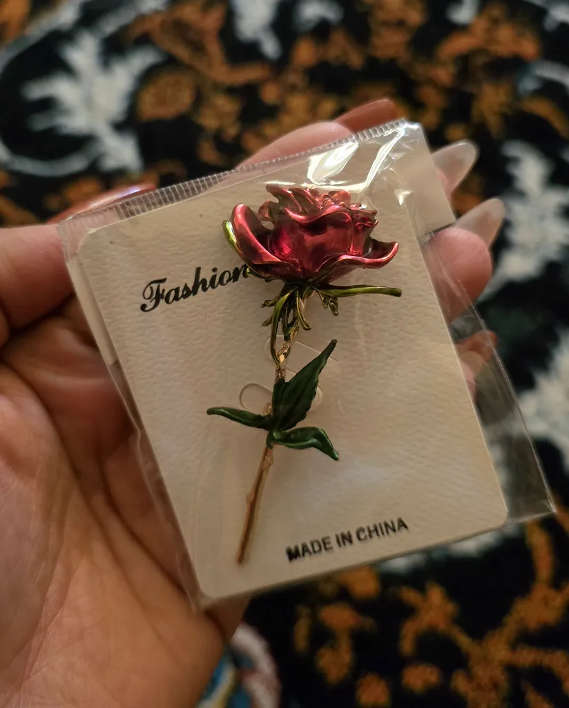 قفل پشتش خراب بود و سنجاق سینه اصلا باز نمیشد کاش قبل از ارسال فروشنده ها محصولات رو چک میکردن و بعد ارسال میکردن. روی قسمت گل رز هم کمی رفتگی داشت ولی از لحاظ زیبایی ظاهری خوب بود