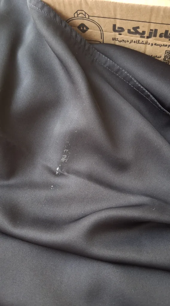 چادر مدل حسنی نگین دار ؛ چون من ضروری چادر لازم داشتم وگرنه برگشت میزدم چون برق روی قسمت نگین ورد اتو روی پارچه مونده بود با اتو بخار یکمی از رد کم کردم ولی برق همچنان باقی است