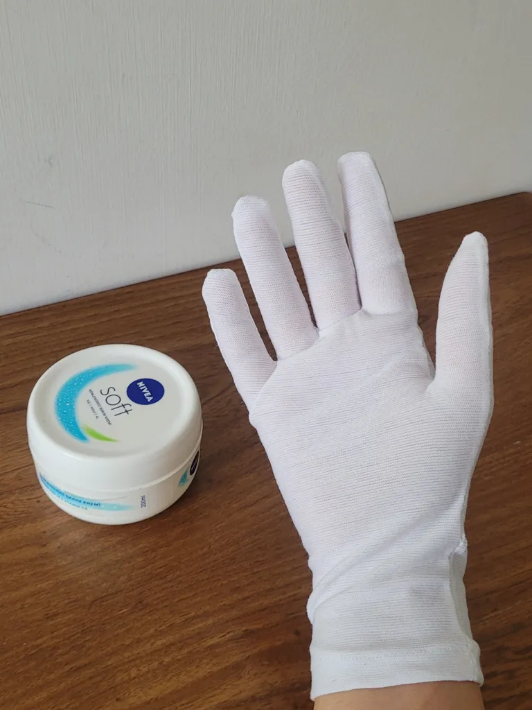 کمی کرم نرم کننده یا لوسیون دست میزنم و راحت دستم میکنم چند ساعت میمونه کارامم میکنم عکس پاکت رو ندارم انداختم دور ولی عکس دستکش رو میزارم