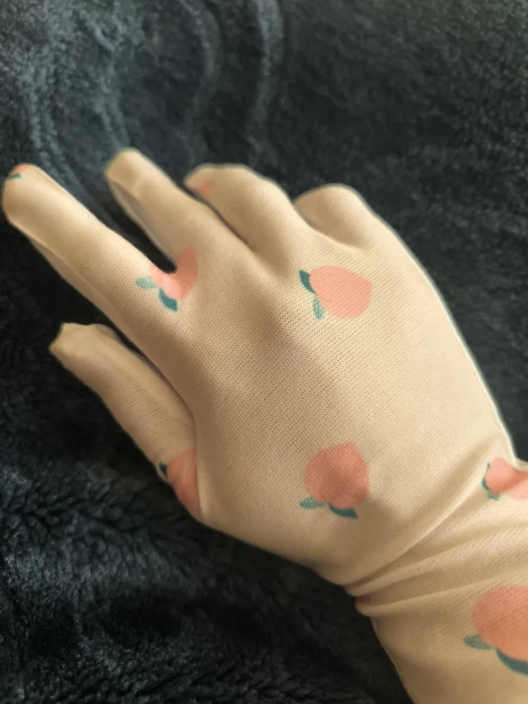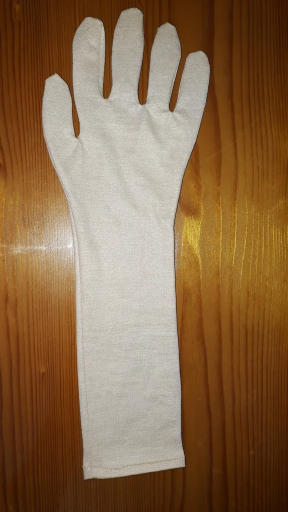 جنس دستکش بیشتر پلاستیکه ضمنا اگه دست های چاقی نداشته باشید از ساق دست میاد پایین. همین طور به اینکه کاملا نخی نیست جایی که مچ دست هست و باید دوخت یه کم تنگتر بشه تا داخل دست قشنگ وایسه اینجوری هم نیست