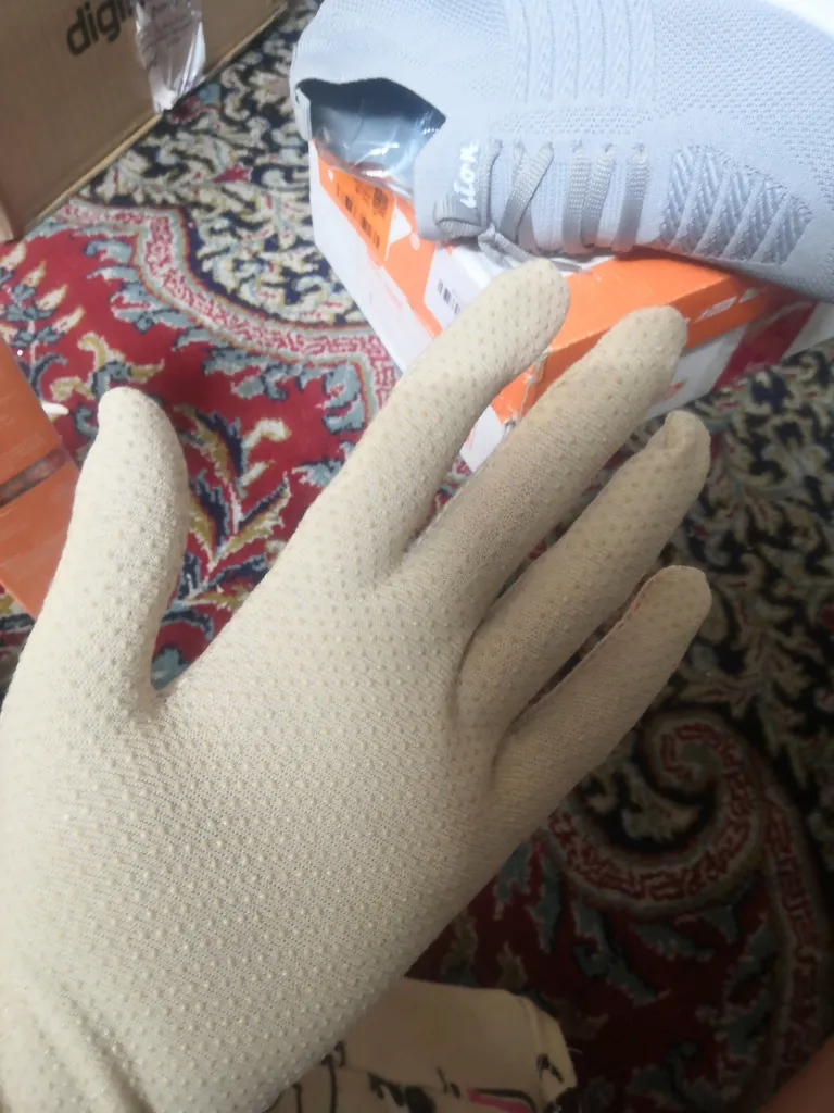 مبینا صادقی : دستکش نخی ؛ این دستکش عالیه وجلوی آفتاب سوختگی دست رو میگیره فقط من خودم یه توصیه دارم براتون این دستکشو قبل مصرف 1 بار تو آب نمک بزارین بعد بزارین خشک بشه اینجوری دستکش آبرفت پیدا نمیکنه