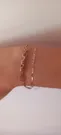 خیلی ظریفه و خیلیم شبیه عکساش نیست و فکر میکردم مدلش یه جور دیگه س برای همین کمی خورد تو ذوقم. بعد این که برای دستای چاق مناسبه. من گیره ش رو به جای حلقه ش تو زنجیر ۳-۴تا مونده به آخر زدم تا اندازه دستم شد. ولی چون ظاهرش تو دست قشنگه مرجوعش نکردم