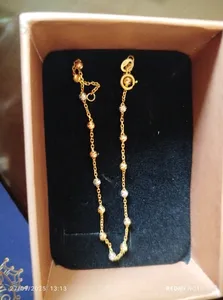 وقتیم بدستم رسید کوچیکتر از عکسی بود که انتخاب کردم و خیلی تیزه و مدام گیر میکنه و دستو زخمی میکنه و لباسو مثل روسری نخکش و بندش خیلی الکیه تا بازش کردم طلایی هاش افتاد درکل نه میشه بعنوان پس انداز روش حساب کرد نه دستت کنی چون هرآن ممکنه کج بشه یا بشکنه من راضی نبودم از خریدم چون بخوامم مرجوع کنم کلی زمان و عصاب خوردی دارم واسه همین همینجوری میزارمش کنار
