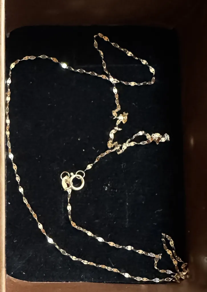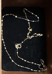 - ⬤ زنجیر طلا زنجیری : این نوع زنجیر به دلیل طراحی ساده و کلاسیک خود، مورد توجه بسیاری از خریداران قرار گرفته است. آنها به راحتی در استفاده و تطابق با انواع لباسها اشاره کردهاند. با این حال، برخی از خریداران از وزن کم و نازکی این زنجیرها شکایت کردهاند و احساس میکنند که به قیمت آنها نمیخورد. زنجیرهای زنجیری به دلیل سادگی و زیبایی، میتوانند به عنوان یک انتخاب مناسب برای استفاده روزمره و همچنین مناسبتهای خاص در نظر گرفته شوند.