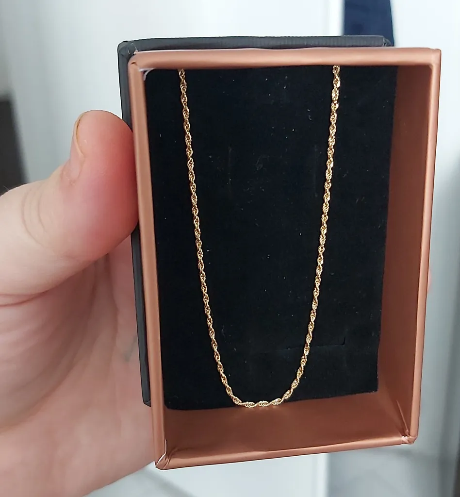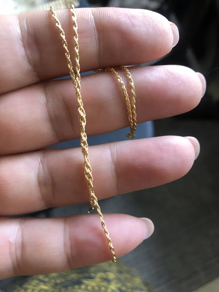 - ⬤ زنجیر طلا طنابی : این نوع زنجیر به دلیل طراحی خاص و بافتی که دارد، ظاهری زیبا و جذاب به گردن میبخشد. خریداران به زیبایی و درخشندگی این زنجیرها اشاره کردهاند و آنها را مناسب برای استفاده روزمره و همچنین مناسبتهای خاص میدانند. با این حال، برخی از خریداران از قفلهای سنگین و ضعیف این زنجیرها شکایت کردهاند و همچنین به نازکی و شکنندگی آنها اشاره کردهاند. به طور کلی، زنجیرهای طنابی به دلیل طراحی خاص خود، میتوانند به عنوان یک انتخاب شیک و مدرن در نظر گرفته شوند، اما نیاز به مراقبت بیشتری دارند.