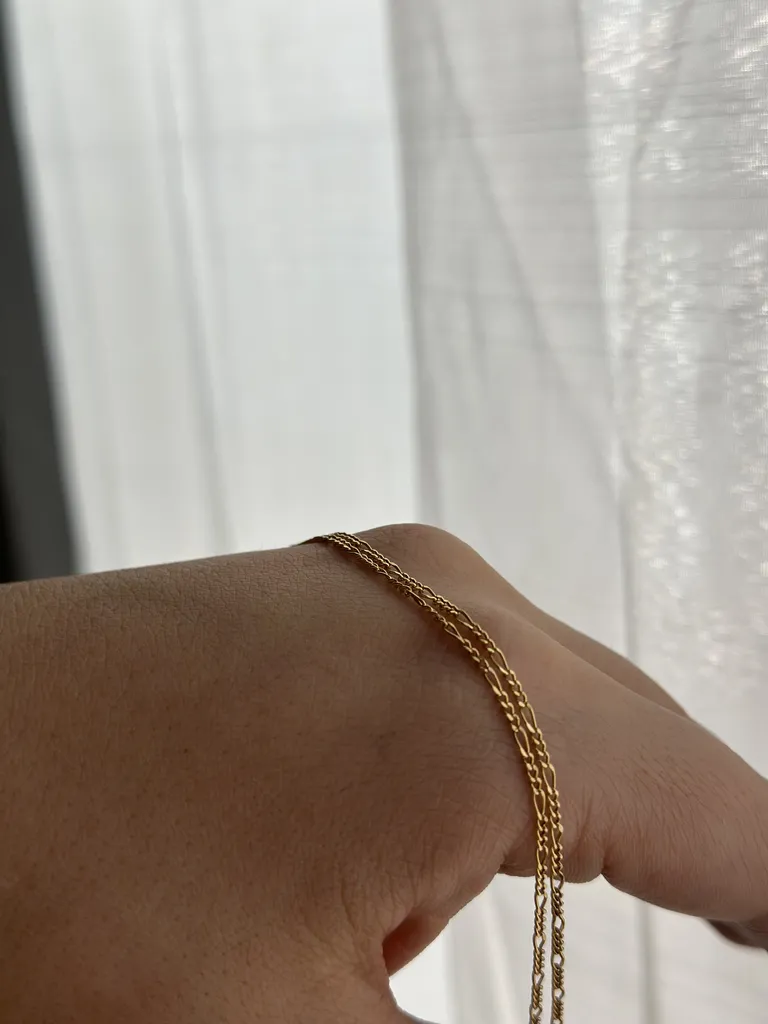 - ⬤ زنجیر طلا فیگارو : زنجیرهای فیگارو به دلیل طراحی خاص و ترکیب حلقههای بزرگ و کوچک، جذابیت خاصی دارند. خریداران از زیبایی و استحکام این زنجیرها ابراز رضایت کردهاند و آنها را مناسب برای استفاده در مناسبتهای خاص میدانند. اما برخی از خریداران به قیمت بالای این زنجیرها و همچنین قفلهای ضعیف آنها اشاره کردهاند. این زنجیرها به دلیل طراحی خاص خود، میتوانند به عنوان یک انتخاب شیک و مدرن در نظر گرفته شوند.