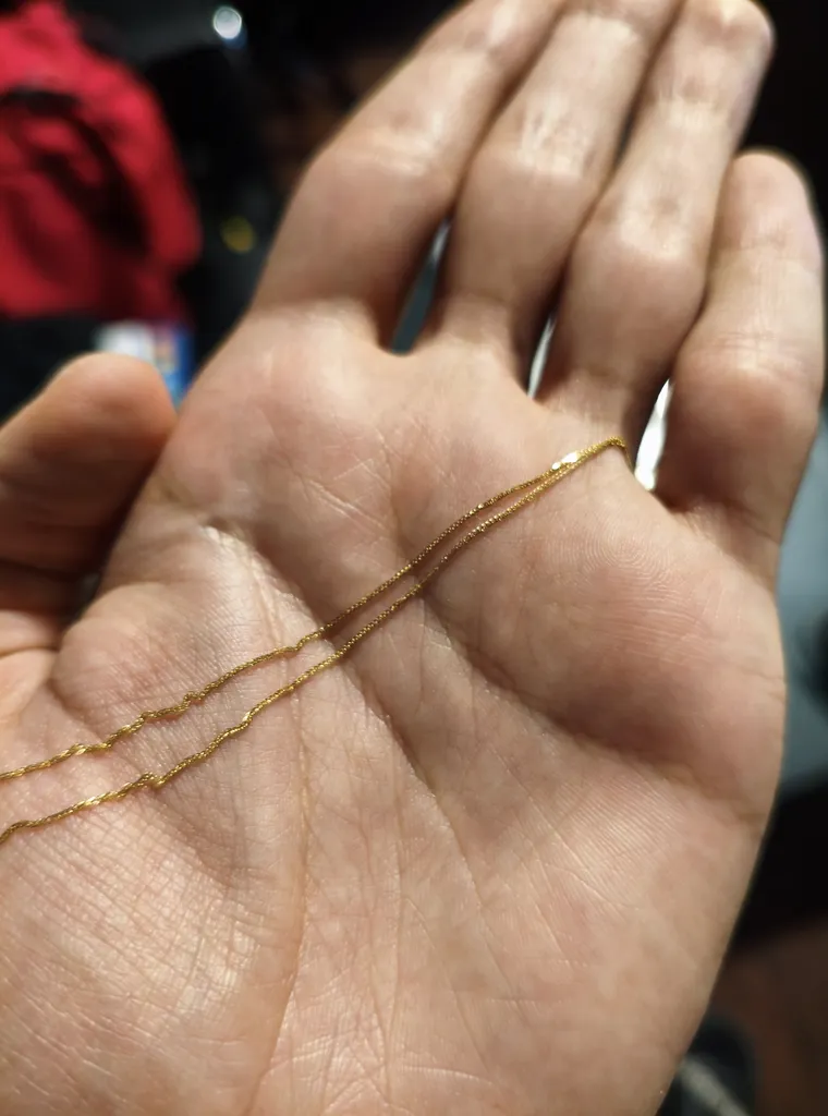 - ⬤ زنجیر طلا حلقهای : این نوع زنجیر به دلیل طراحی ساده و کلاسیک خود، مورد توجه بسیاری از خریداران قرار گرفته است. آنها به راحتی در استفاده و تطابق با انواع لباسها اشاره کردهاند. با این حال، برخی از خریداران از وزن کم و نازکی این زنجیرها شکایت کردهاند و احساس میکنند که به قیمت آنها نمیخورد. زنجیرهای حلقهای به دلیل سادگی و زیبایی، میتوانند به عنوان یک انتخاب مناسب برای استفاده روزمره و همچنین مناسبتهای خاص در نظر گرفته شوند.